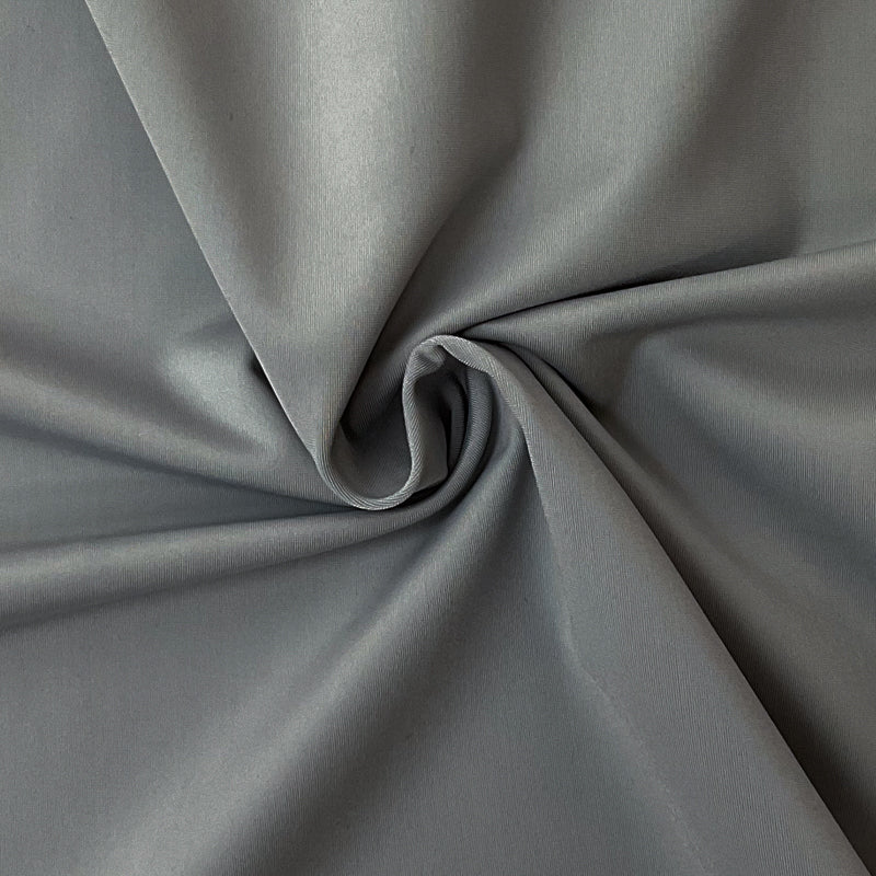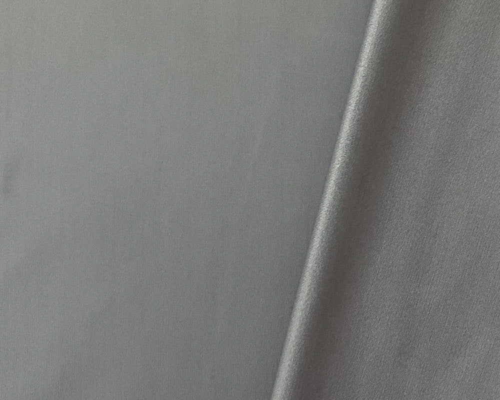 -The silver solid satin tricot knit has a subtle reflective luster, ideal for fashion-forward activewear.