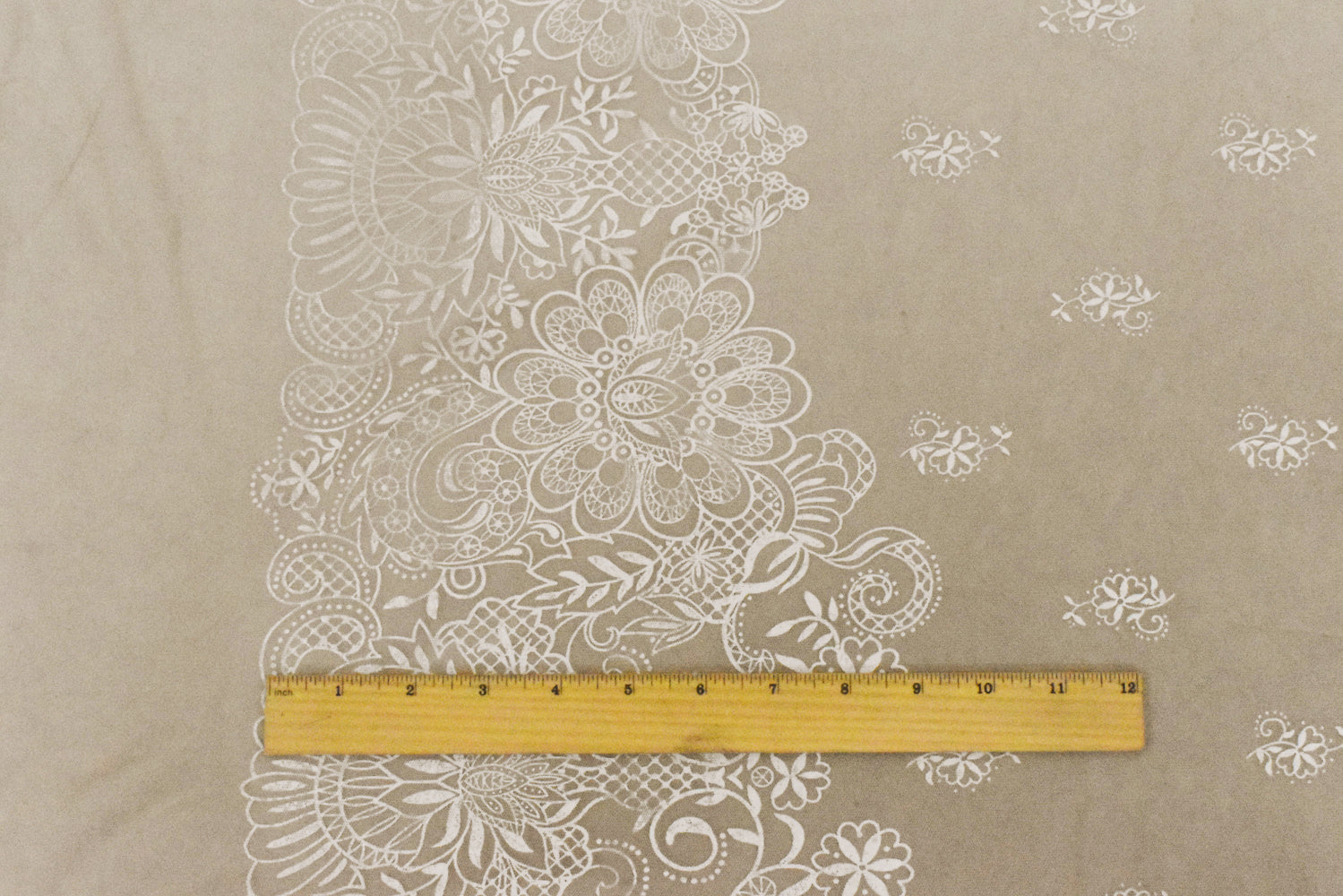 Sand Beige-White Floral Border Printed Nylon Mesh Knit Fabric
