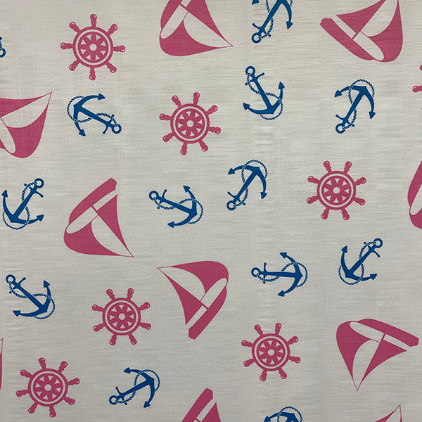 Pink and Blue Nautical Print on White Oilcloth Fabric