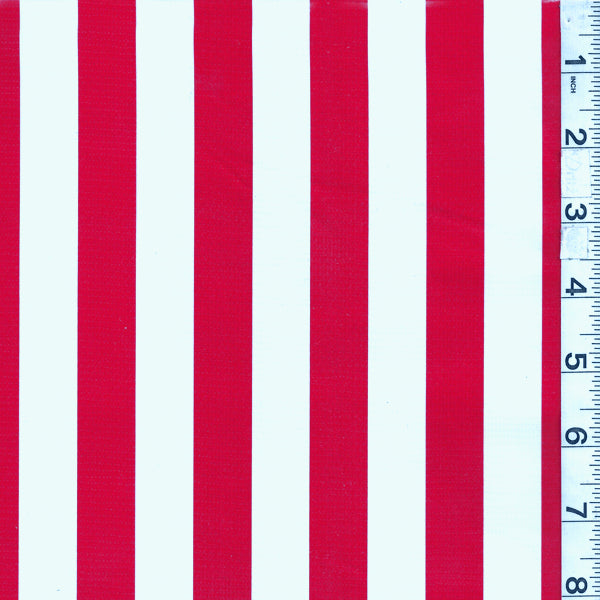 Red and White 3/4" Print Stripe Oilcloth Fabric