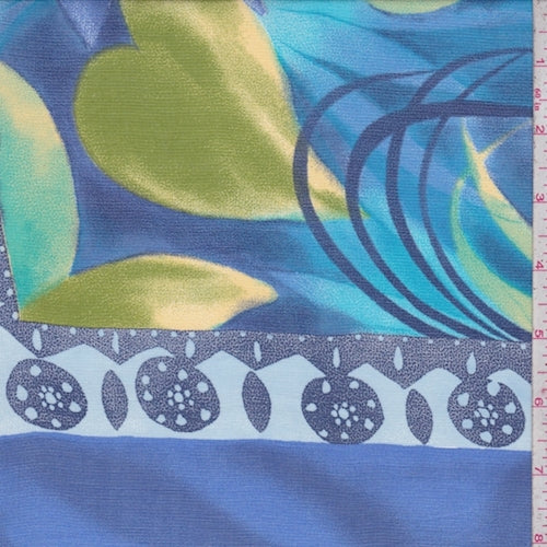 Ocean/Turquoise Tropical Floral Tile Crepe Organza Fabric