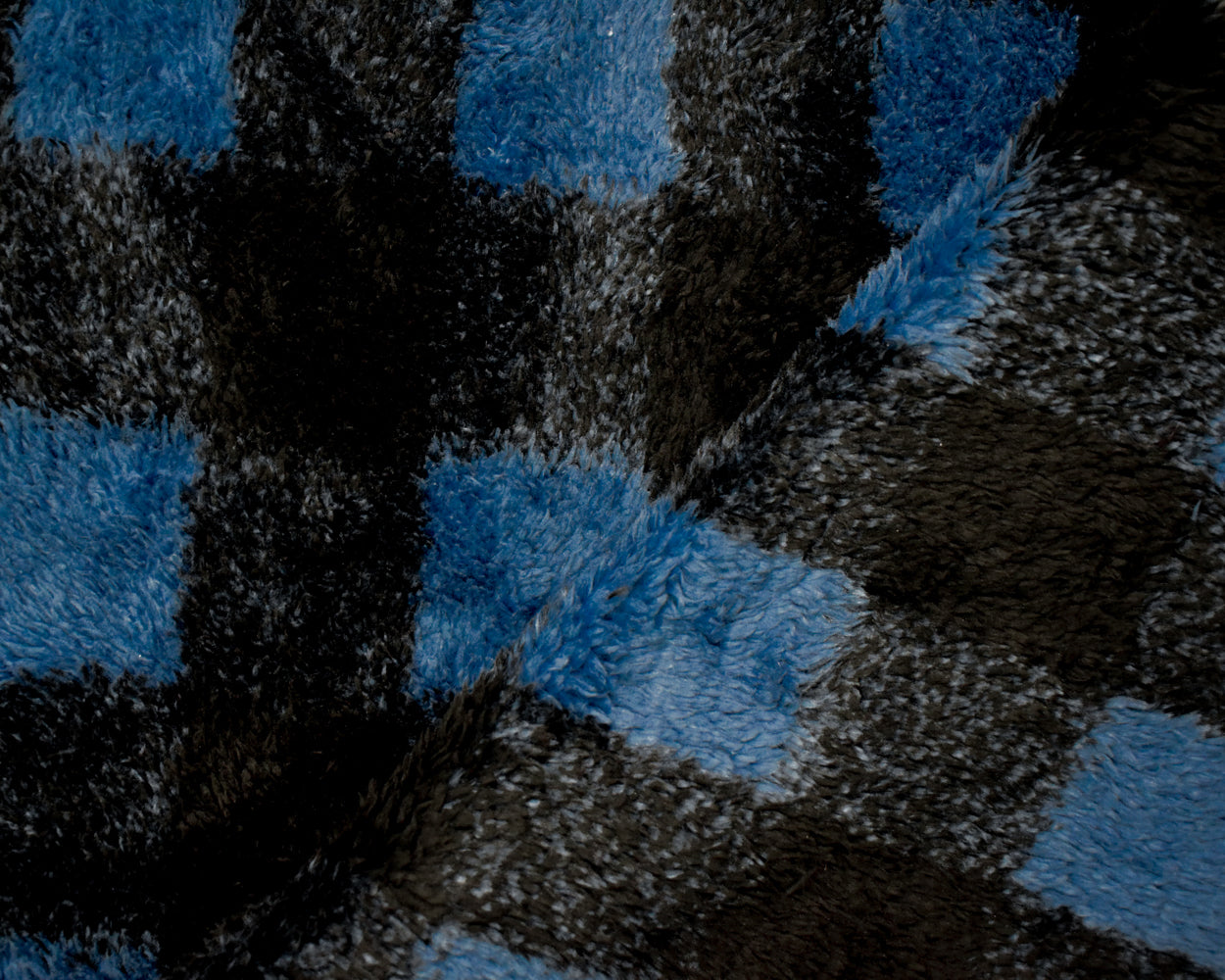 Blue-Black Polyester Check Plaid Double Sided Fleece Knit Fabric
