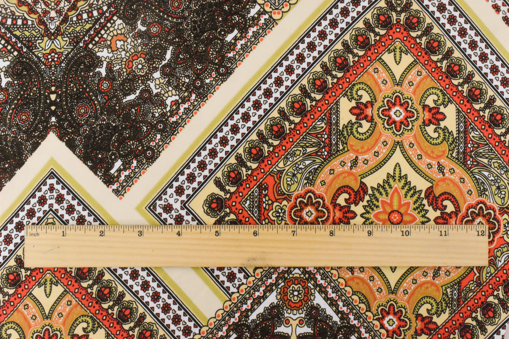 Beige-Orange-Multi Bandana Printed Stretch Poly ITY Knit Fabric
