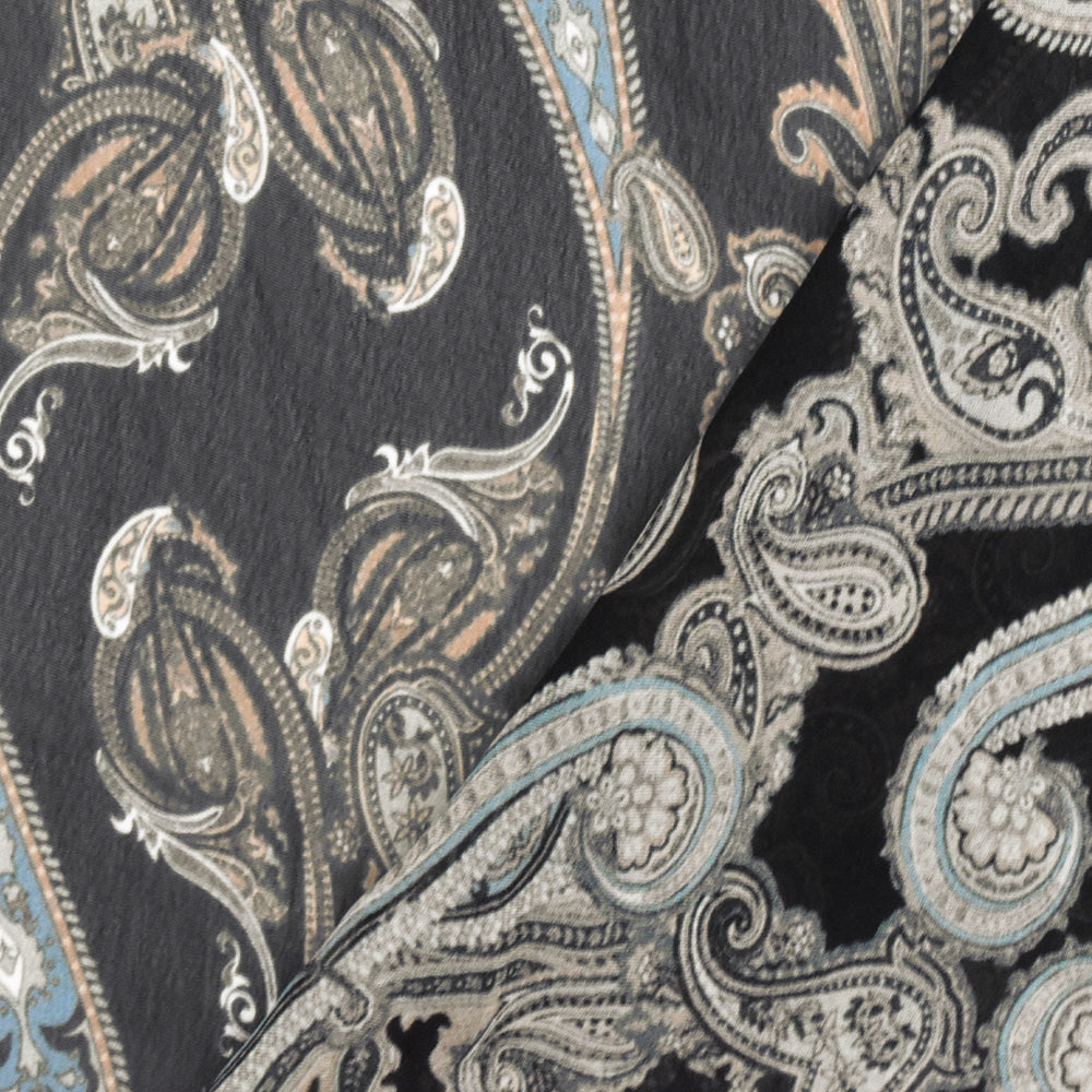 Black-Blue-Multi Famous Designer Paisley Printed Rayon Chiffon Fabric