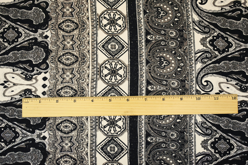 Black-Gray-Multi Poly Paisley Baroque Printed Crepe Georgette Woven Fabric