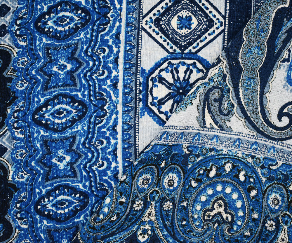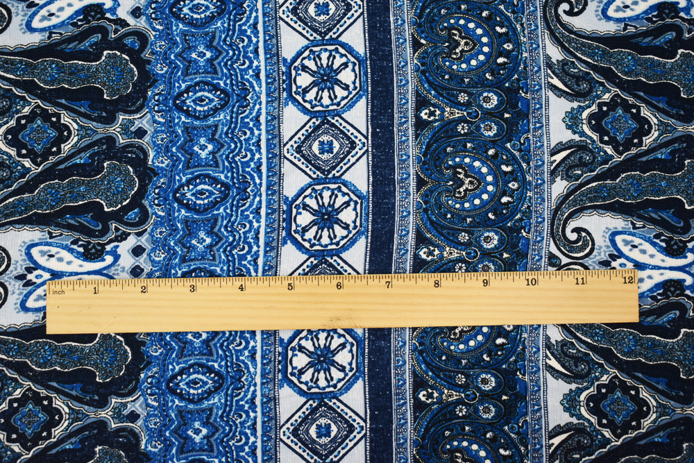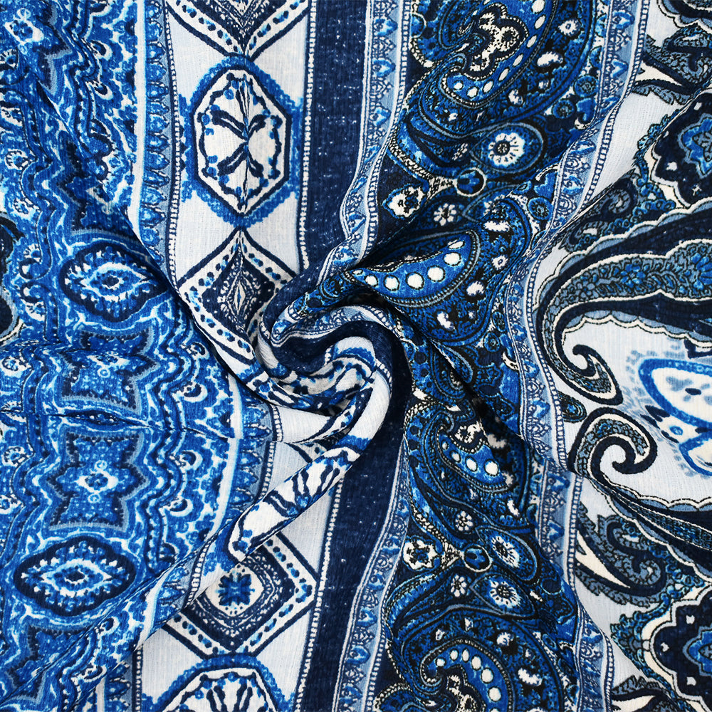 Blue-White-Multi Poly Paisley Baroque Printed Crepe Georgette Woven Fabric