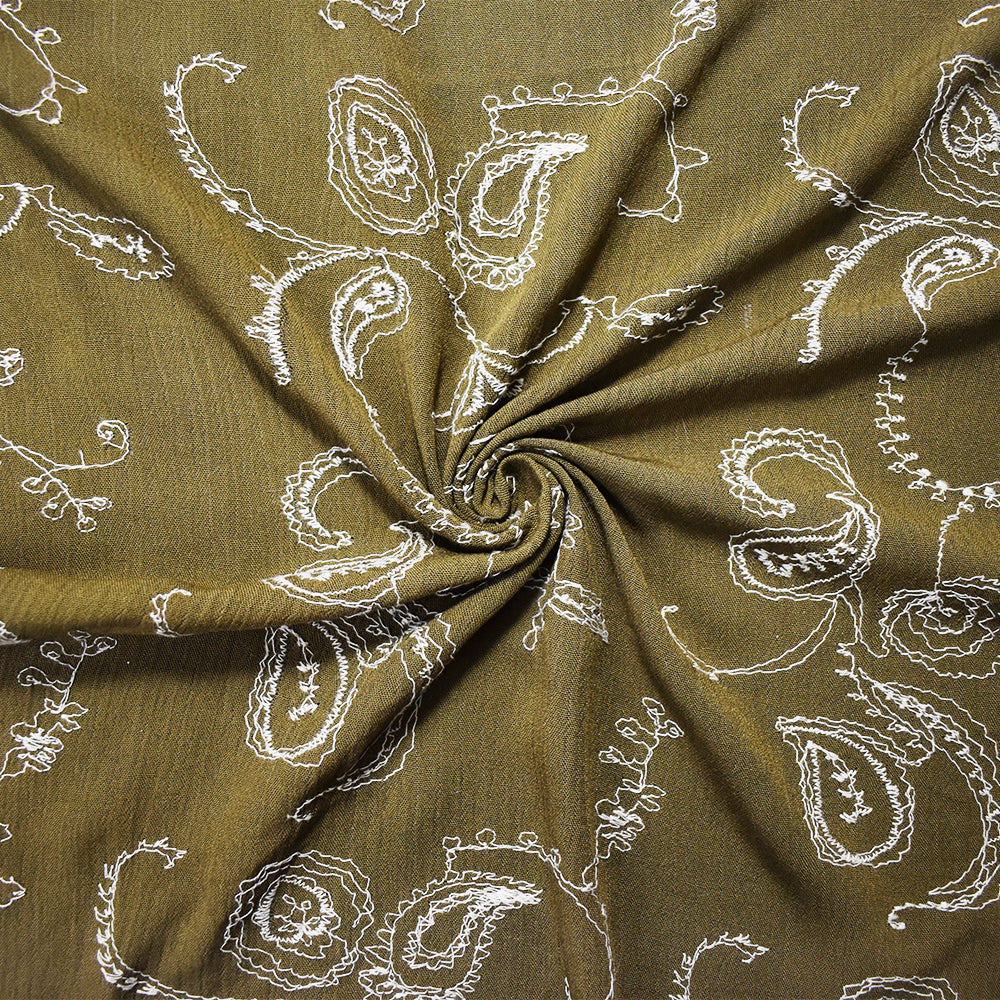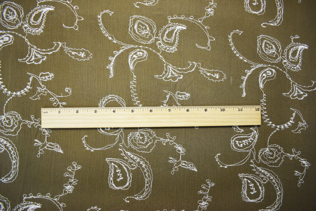 Brown Cotton Paisley Vine Embroidered Crinkled Gauze Woven Fabric