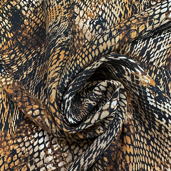 Brown Multi Snakeskin Animal Print Poly Georgette Fabric