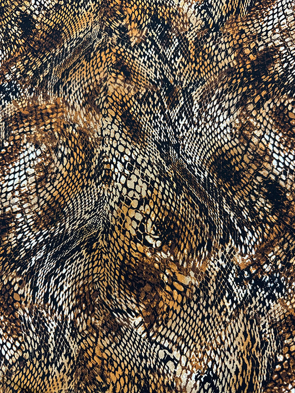-Brown, Gold, Black, Tan, White,& Beige Multi Snakeskin Animal Print Poly Georgette Fabric