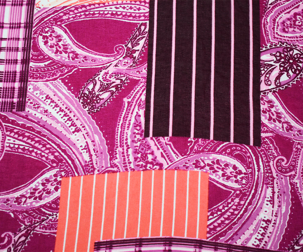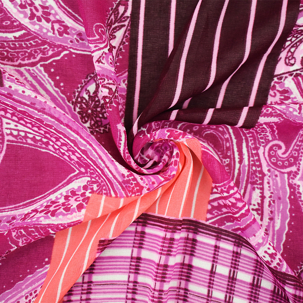 Fuchsia Pink-Coral-Multi Patch Paisley Printed Poly Chiffon Woven Fabric