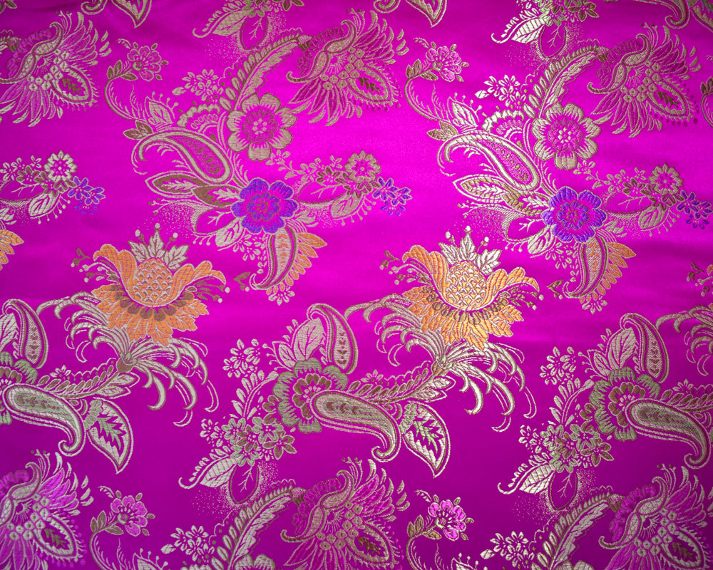 Fuchsia Pink-Multi Polyester Floral Paisley Chinese Brocade Woven Fabric