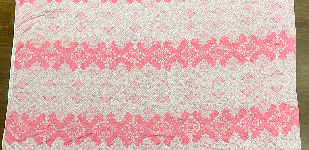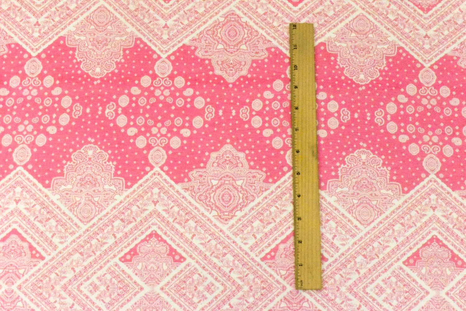 Geranium Pink-White Baroque Border Printed Stretch Rayon ITY Jersey Fabric