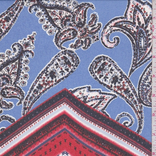 Periwinkle/Red Paisley Chevron Crepe Georgette Fabric