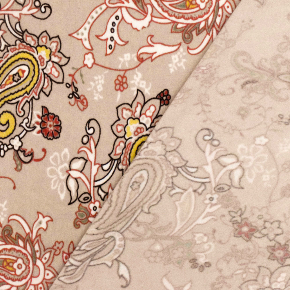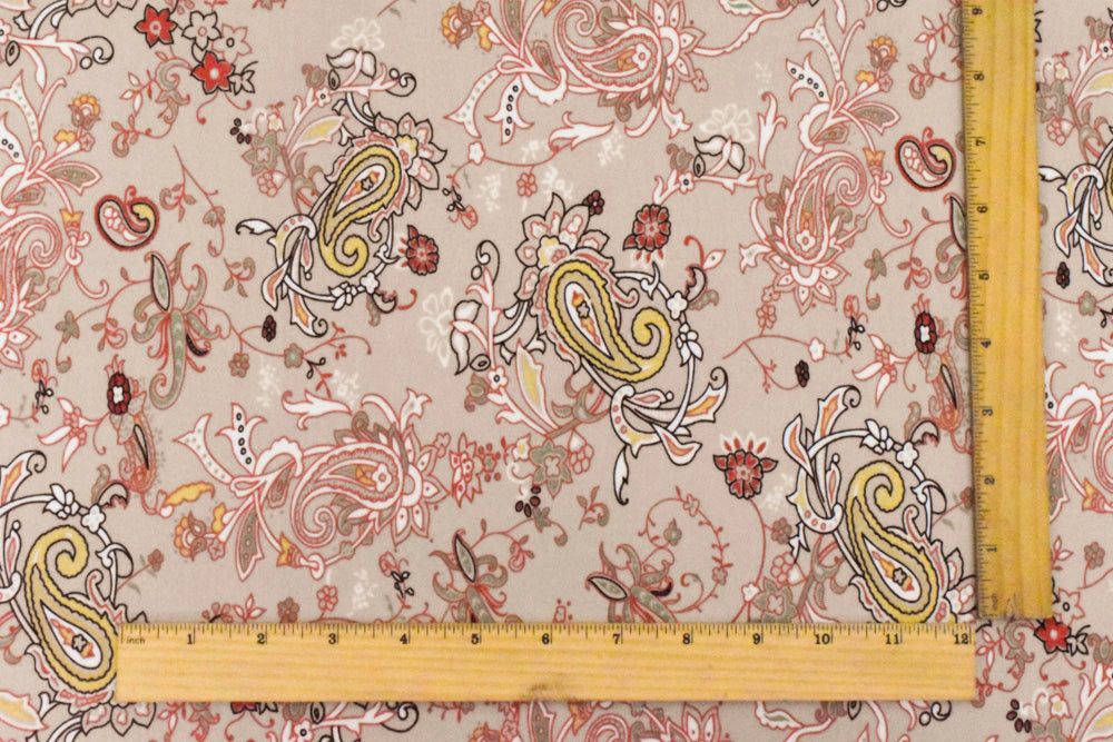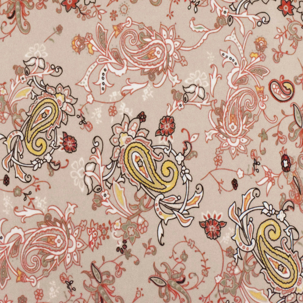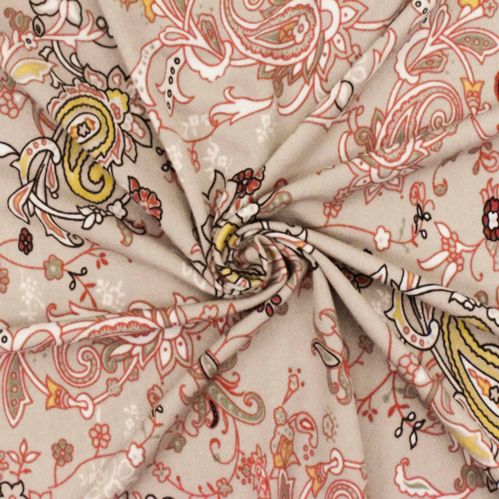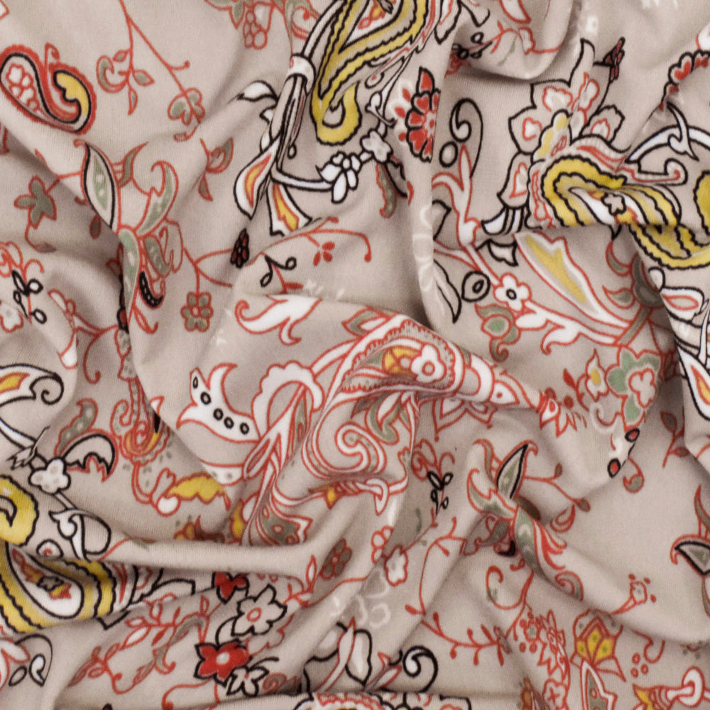 Sugar Beige-Orange-Multi Paisley Printed Stretch Polyester ITY Knit Fabric