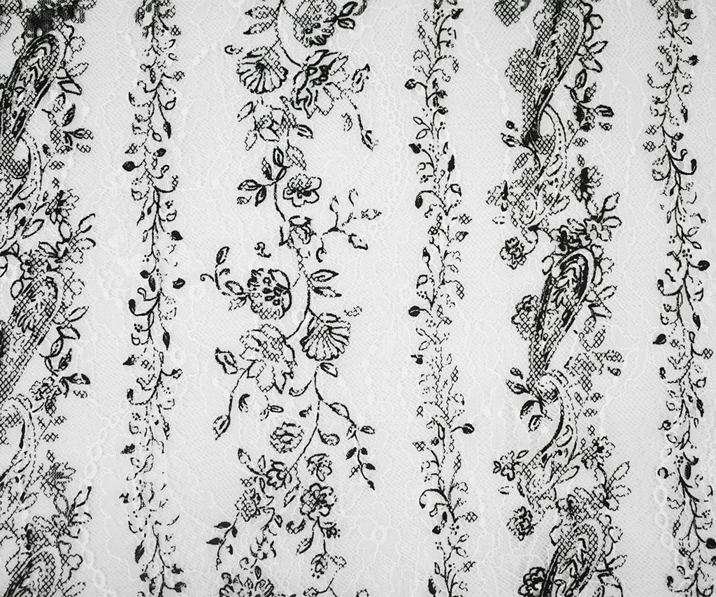 White-Black Nylon Floral Paisley Printed Lace Mesh Knit Fabric