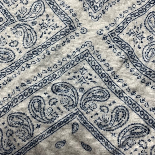 White/Blue Paisley Tile Slub Jersey Knit Fabric