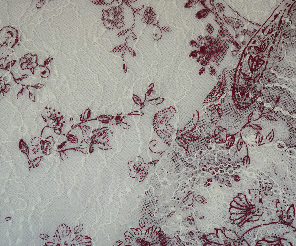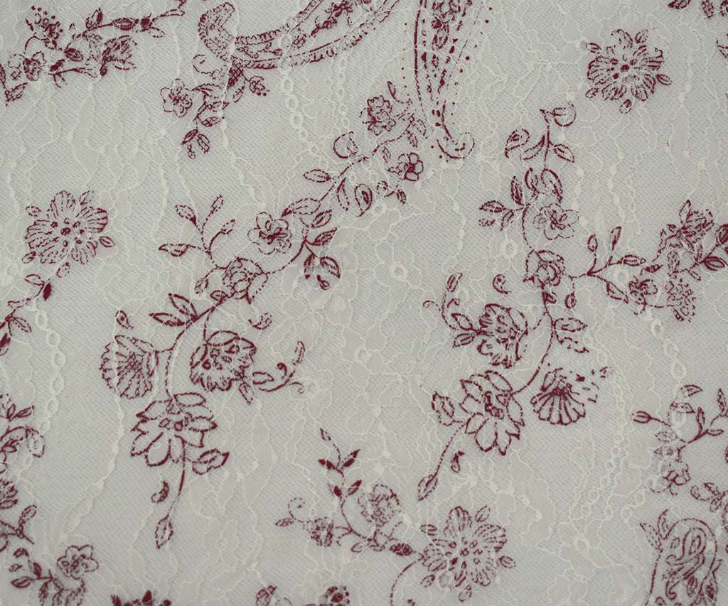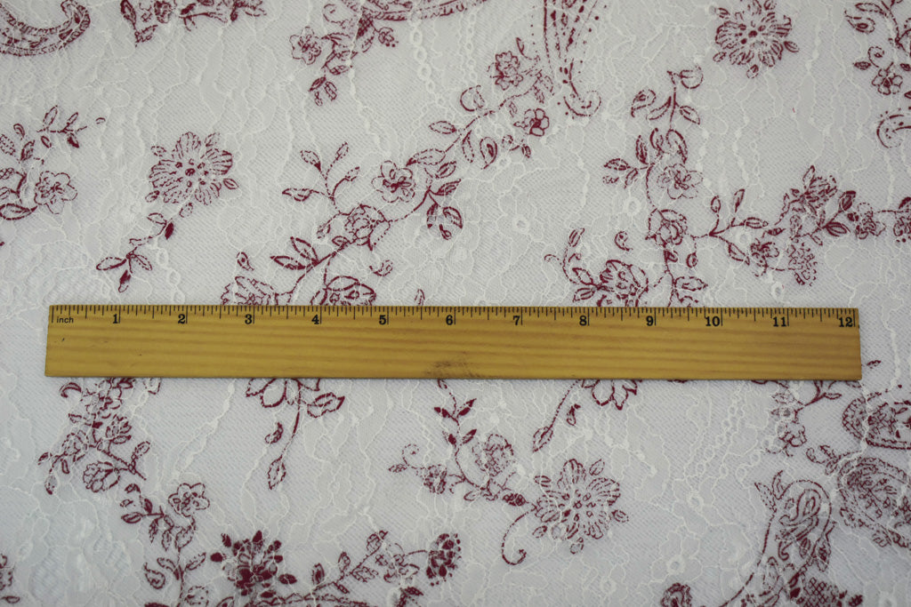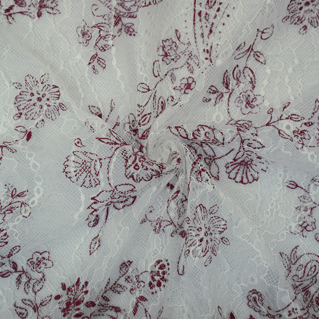 White-Red Nylon Floral Paisley Printed Lace Mesh Knit Fabric