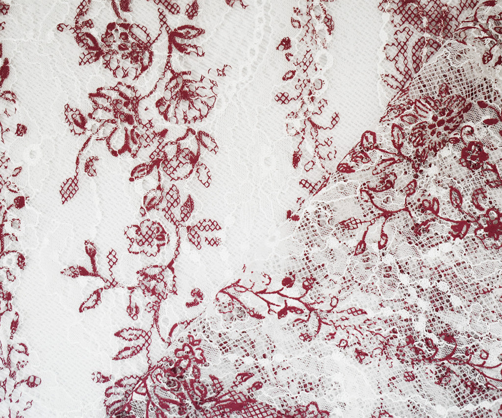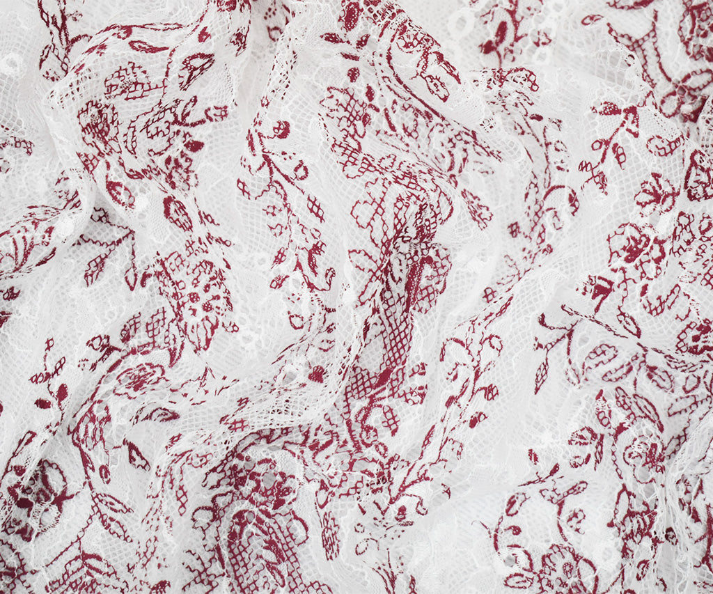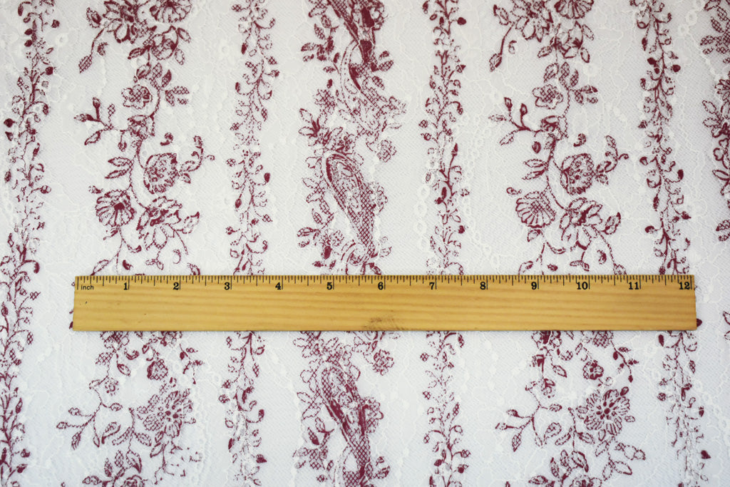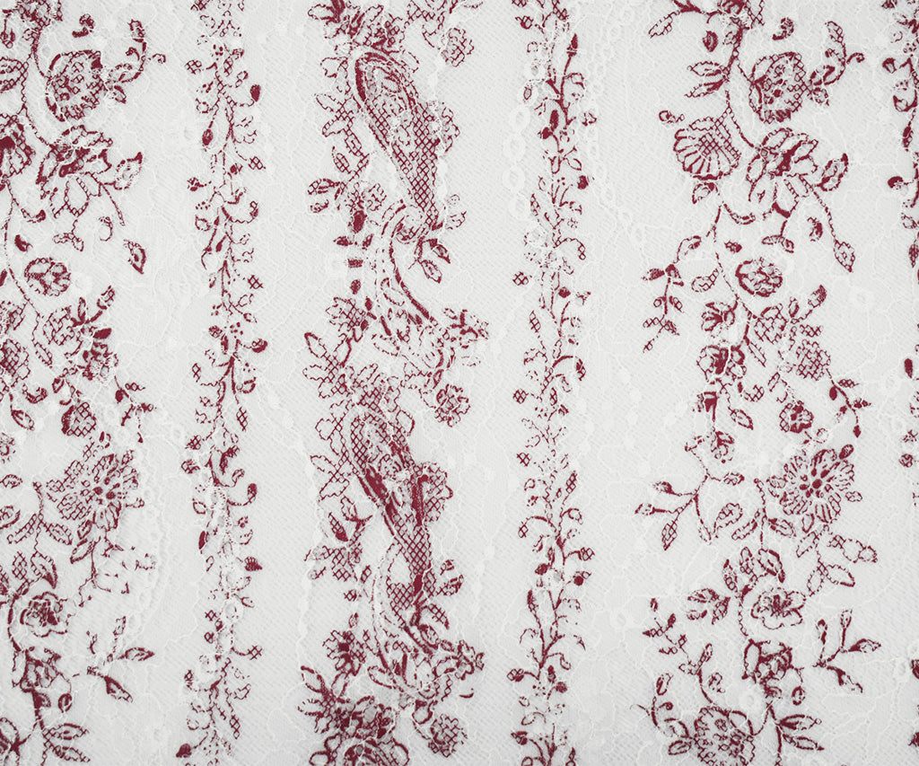 White-Red Nylon Floral Paisley Vine Printed Lace Mesh Knit Fabric