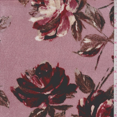 Pink Pearl/Berry Floral Panne Velvet Knit Fabric