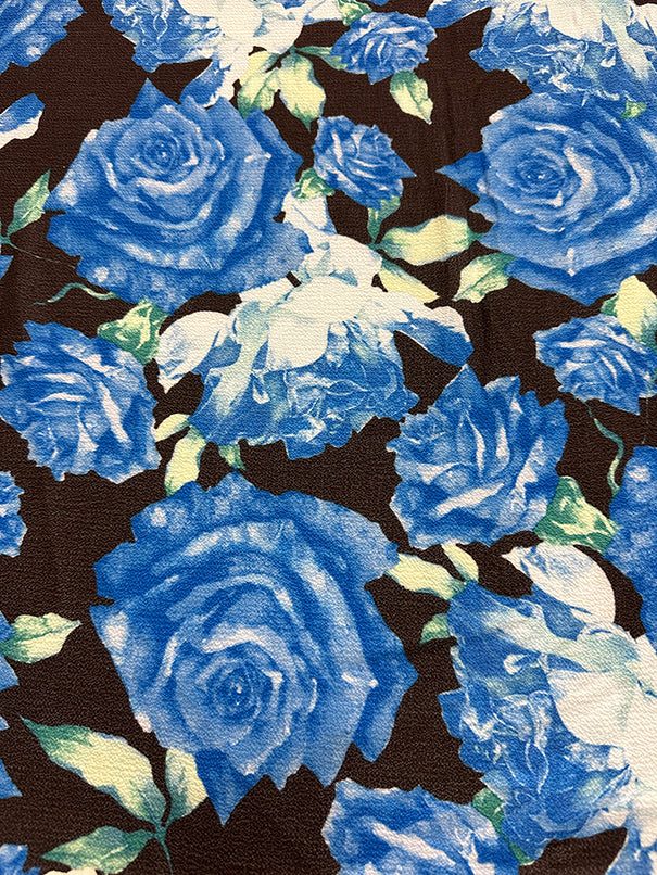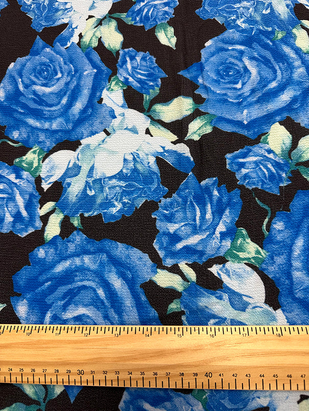 1 1/2 YD PC-Royal Blue Rose Floral Crepe Georgette Fabric