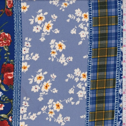 1 1/2 YD PC-Sapphire Floral Stripe Crepe Fabric