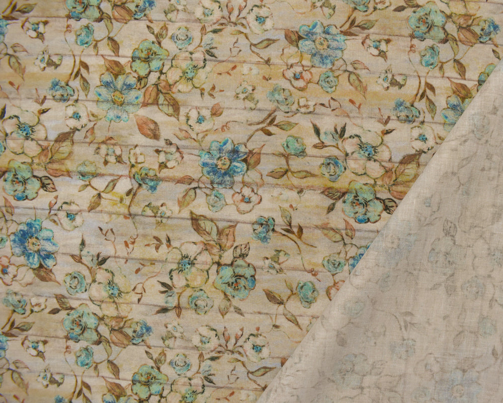 -Teal-Ivory-Multi Cotton Susan Winget Floral Wood Printed Quilting Woven Fabric