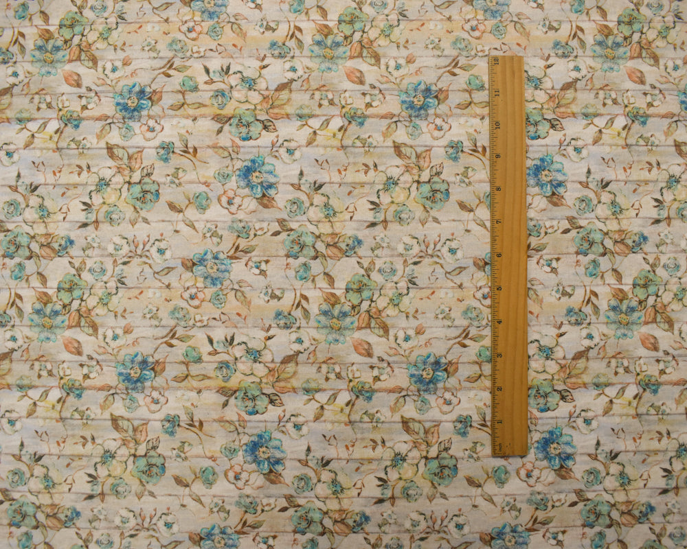 1 1/4 YD PC-Teal-Ivory-Multi Cotton Susan Winget Floral Wood Printed Quilting Woven Fabric