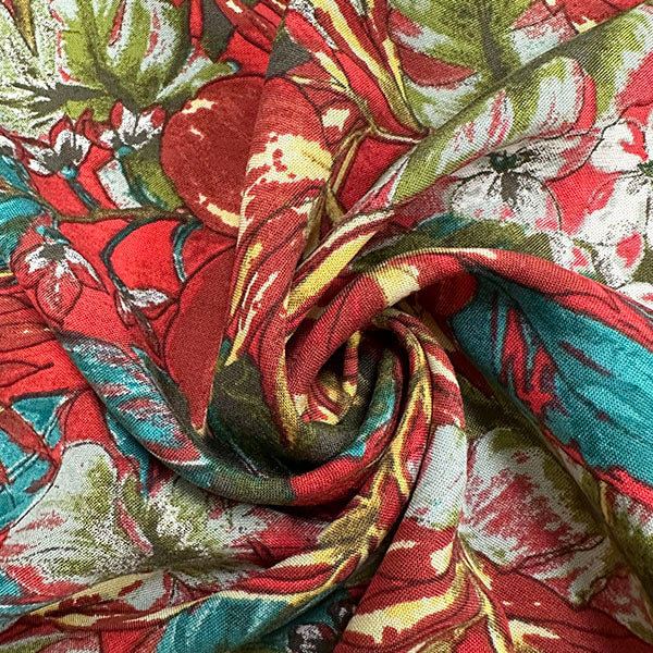 2 1/2 YD PC-Red Multi Palm Print Rayon Challis Fabric