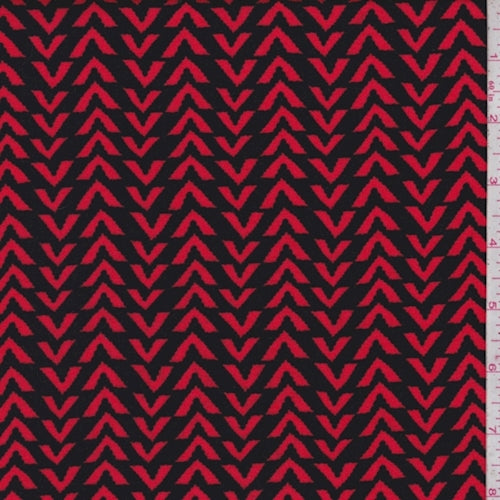 3 1/2 YD PC-Black/Cherry Broken Chevron Rayon Challis Fabric