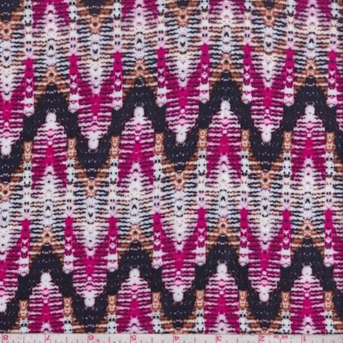 3 YD PC-White/Hot Pink/Plum Zig Zag Jersey Knit Fabric
