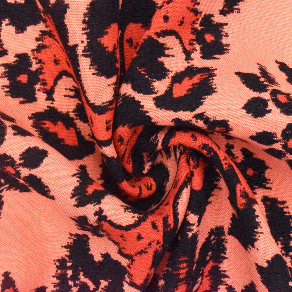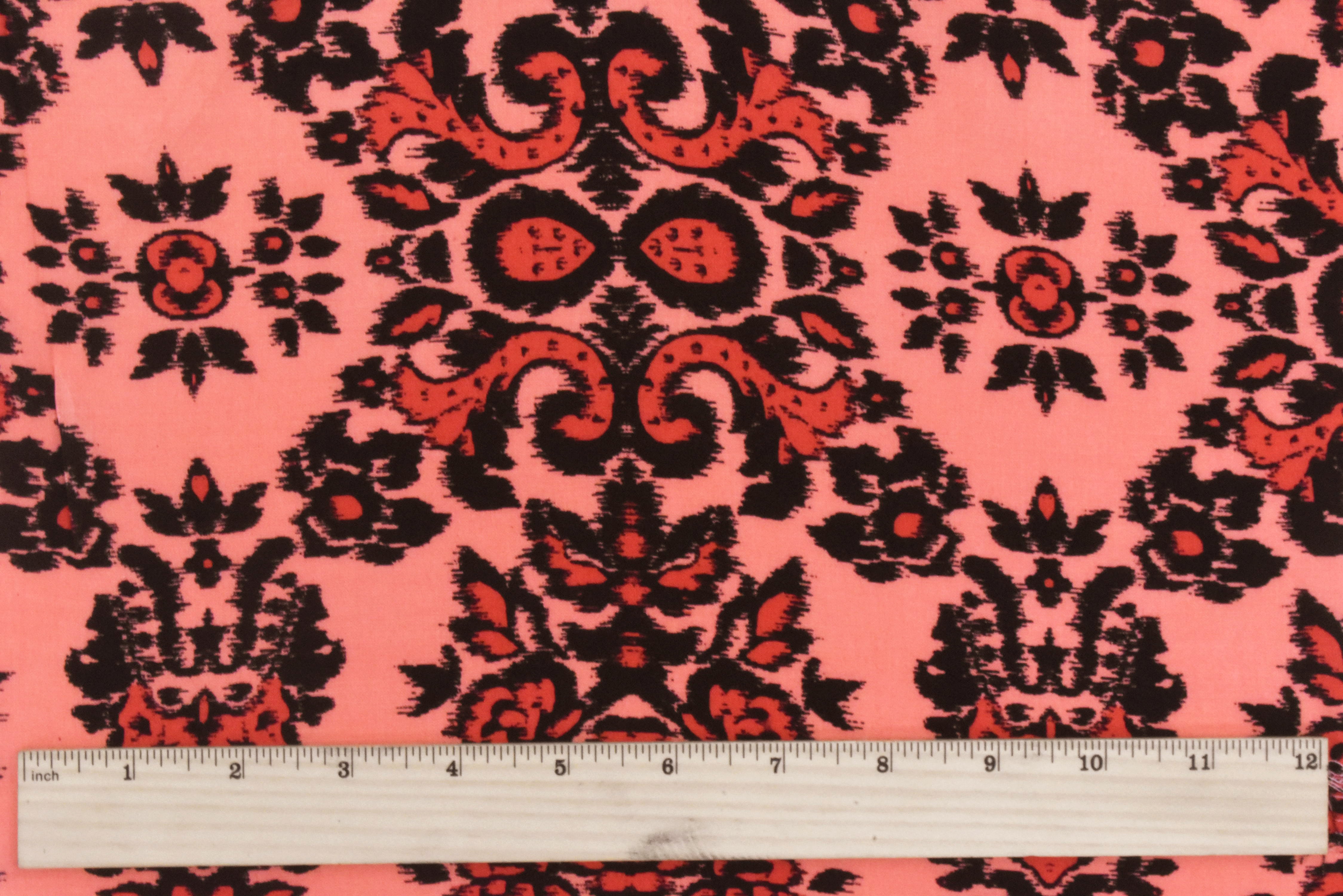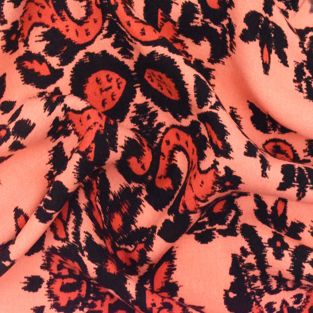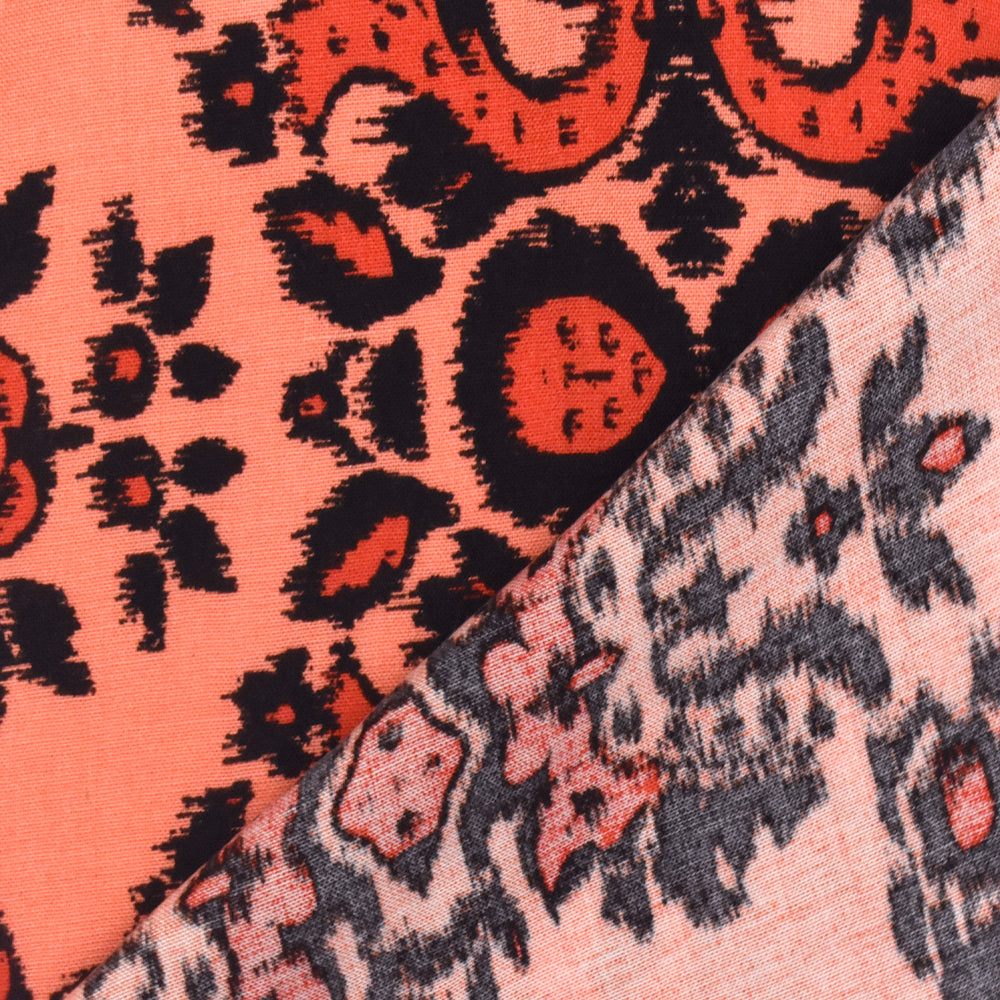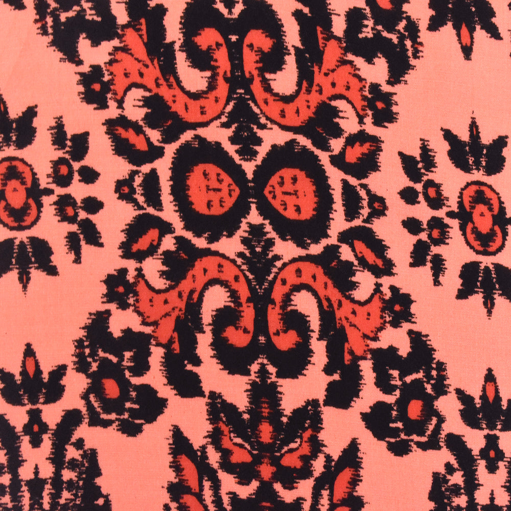 4 YD PC-Coral Orange-Multi Baroque Printed Challis Woven Fabric