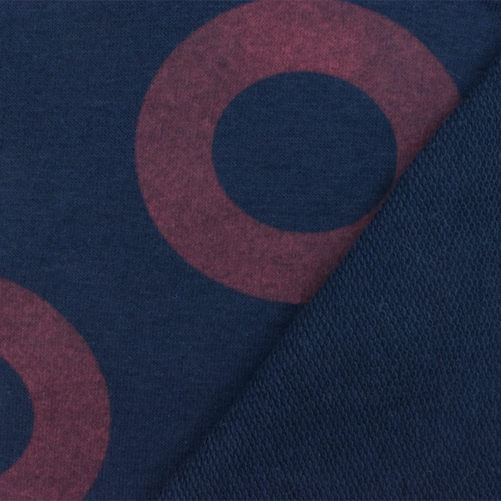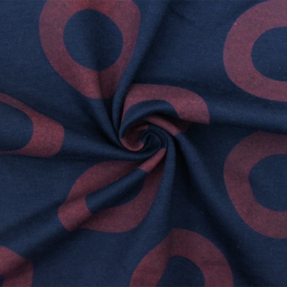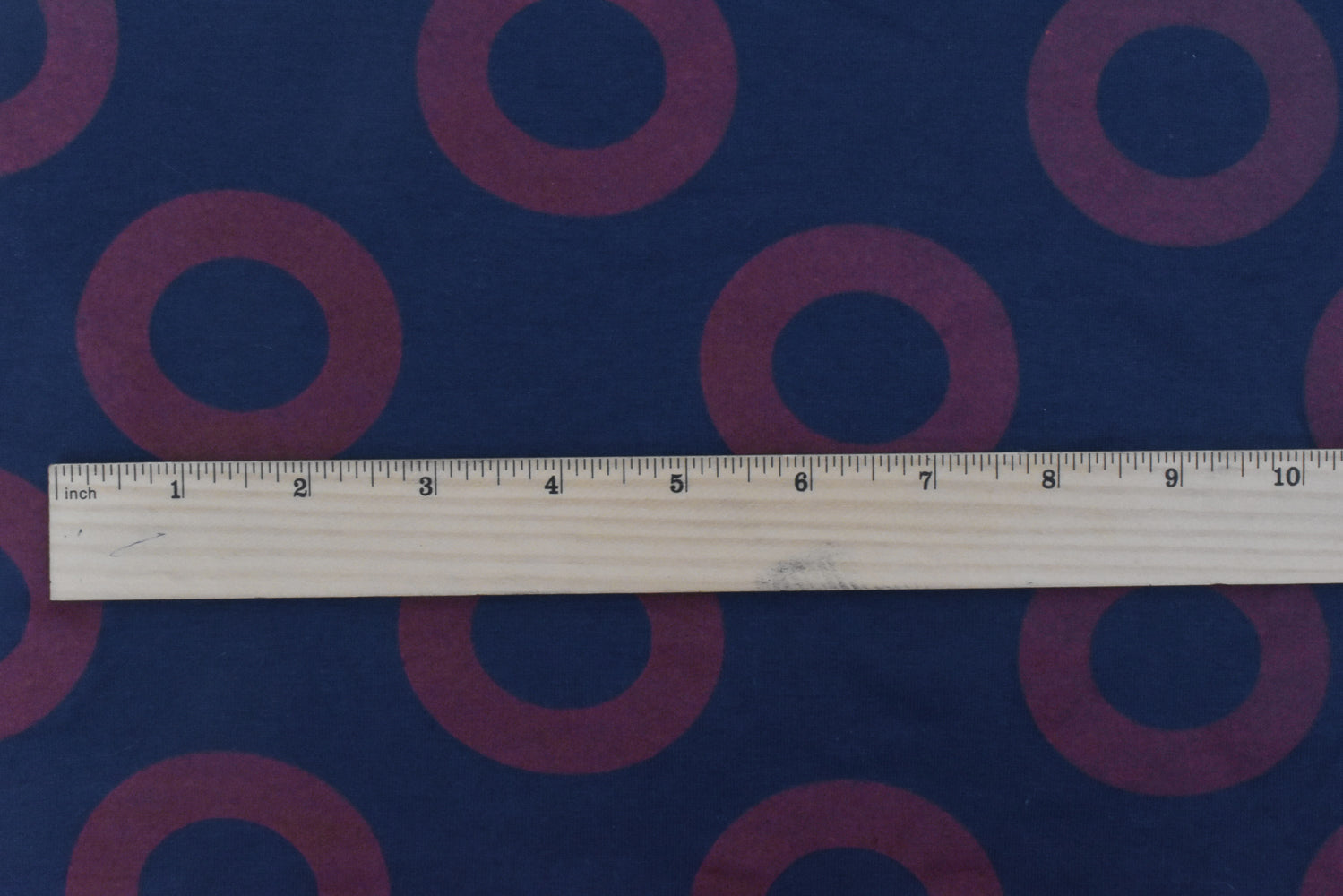 4 YD PC-Deep Ocean Blue-Maroon Circle Printed Stretch French Terry Knit Fabric