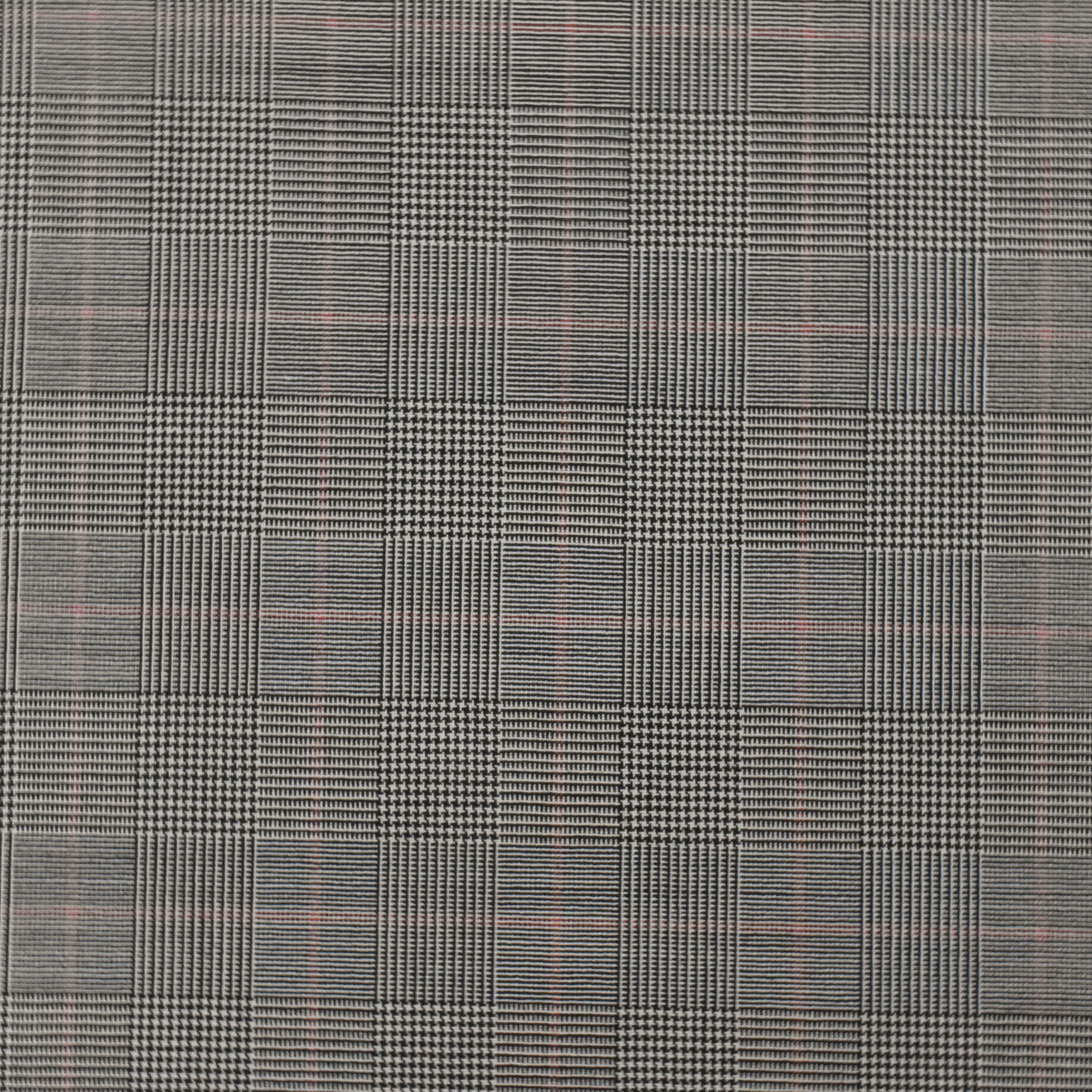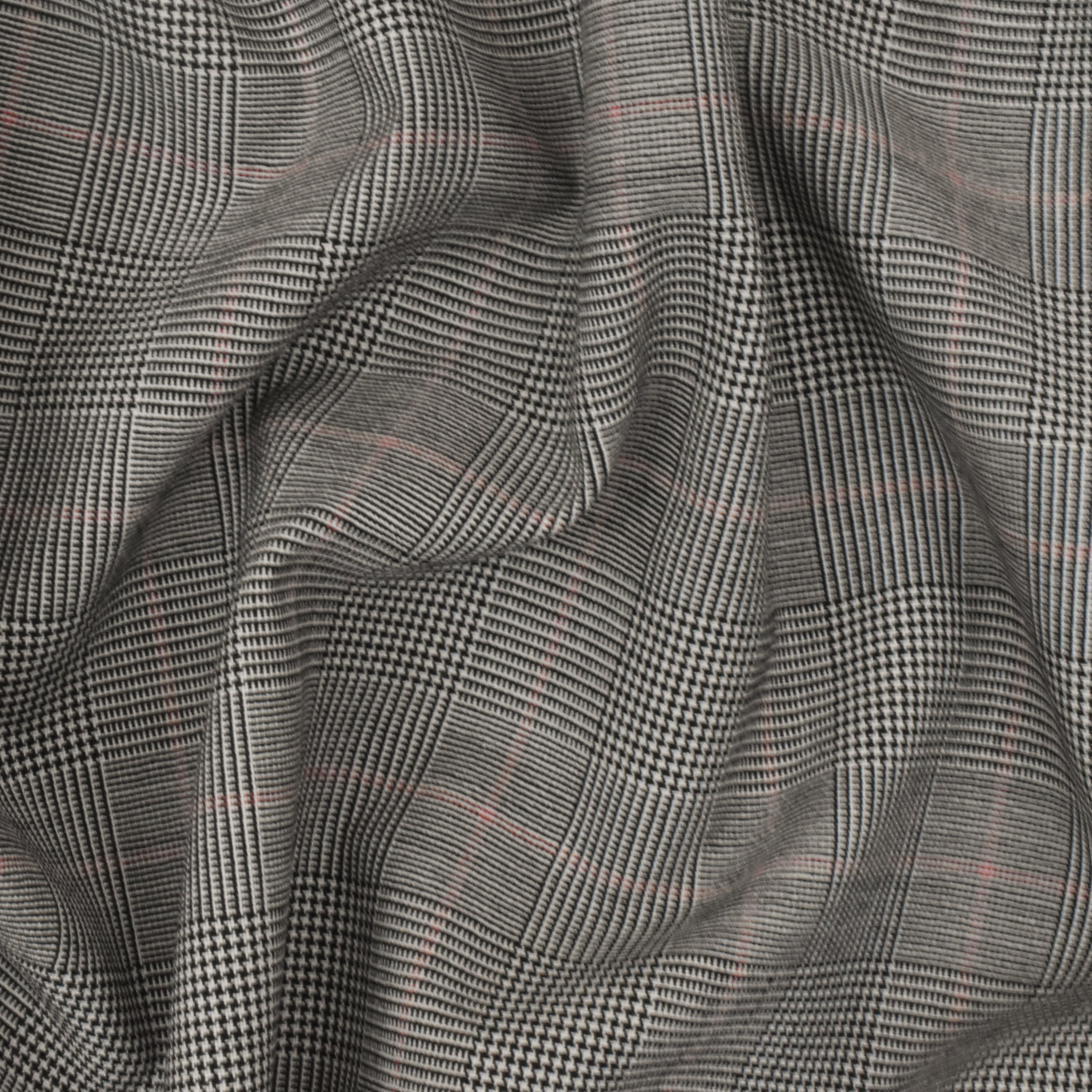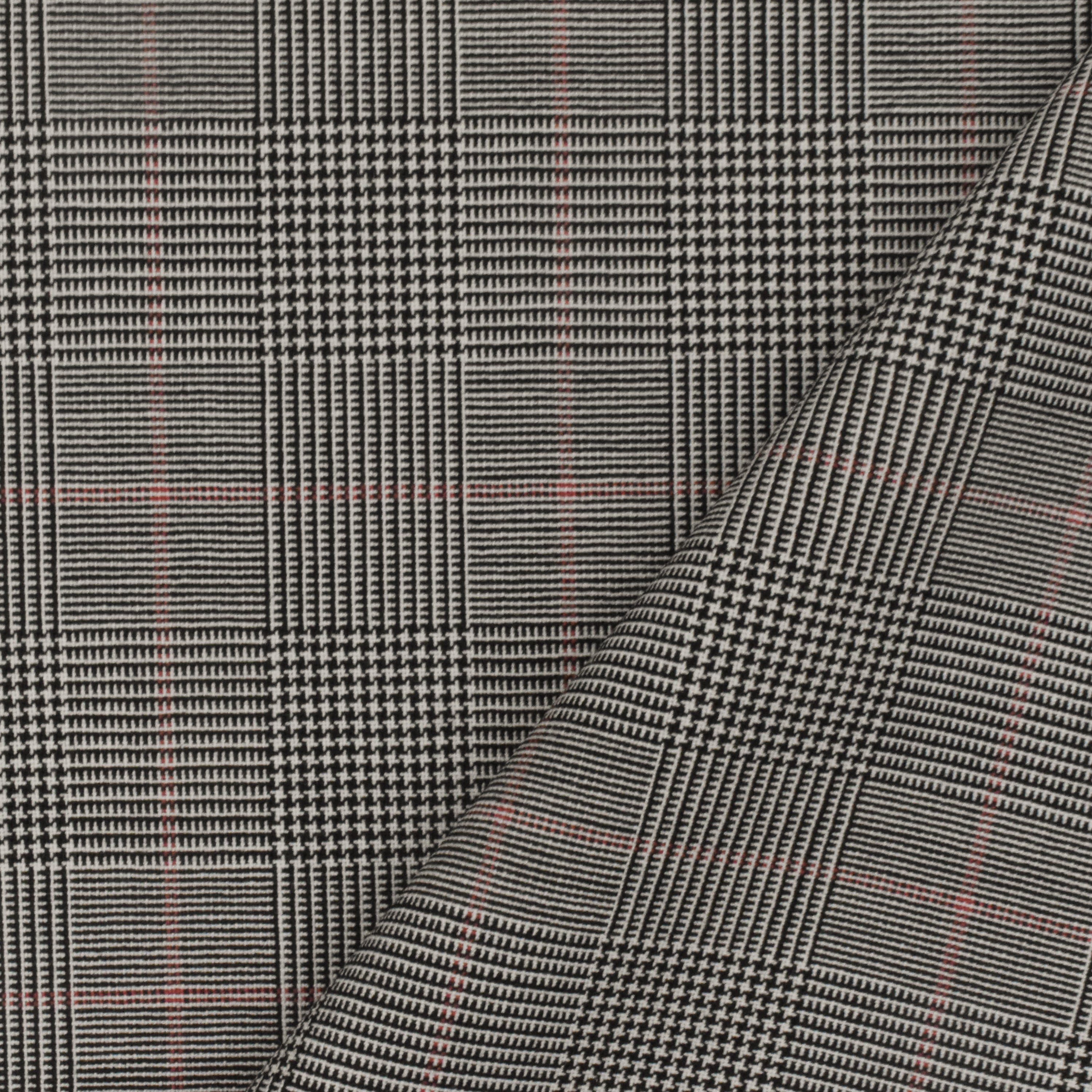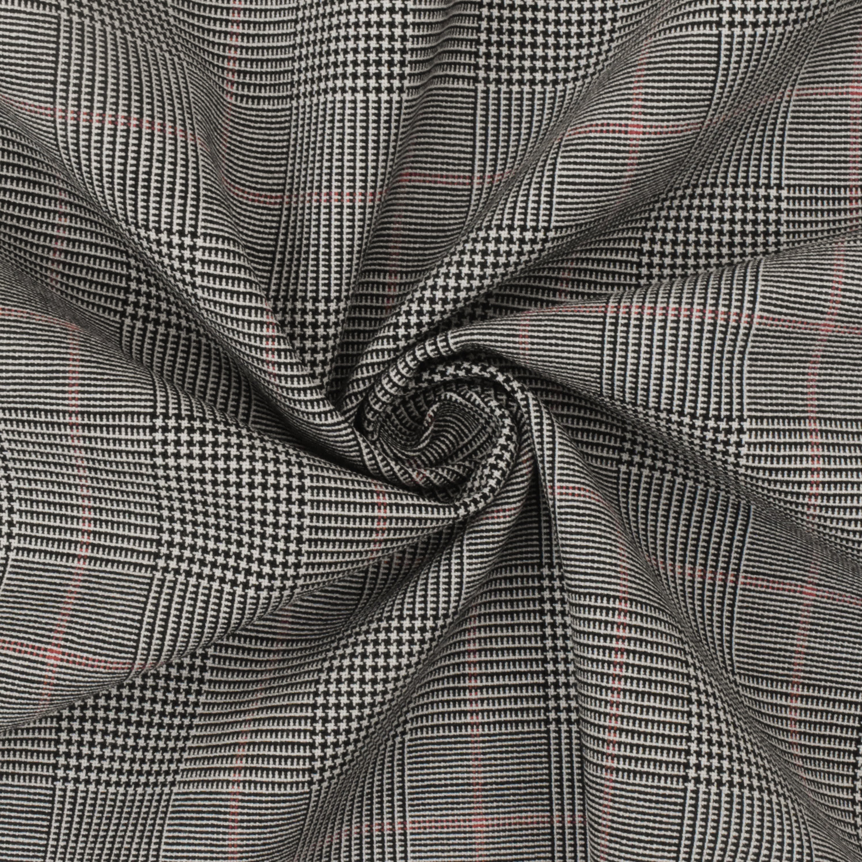 Classic Black-Gray-Red Plaid Wool Poly Woven Suiting Fabric