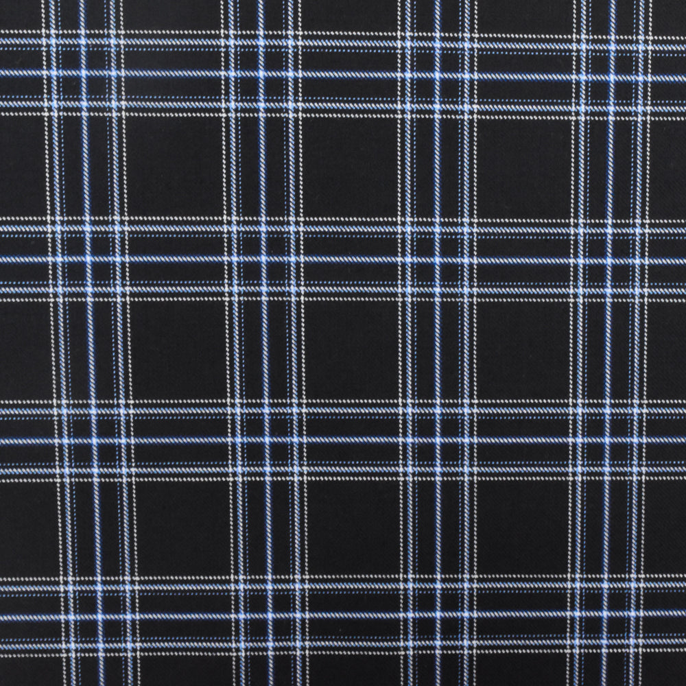 Cold Black-Blue-Multi Plaid Poly-Wool Twill Woven Fabric
