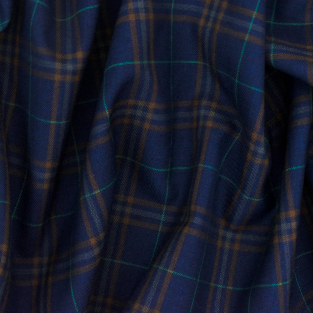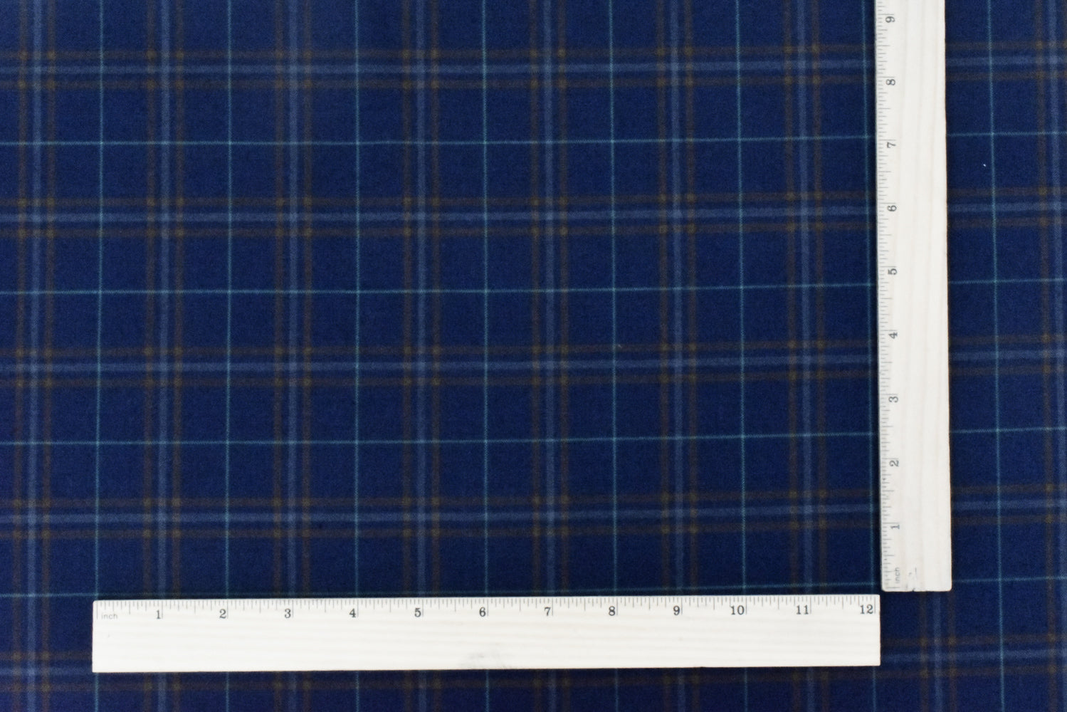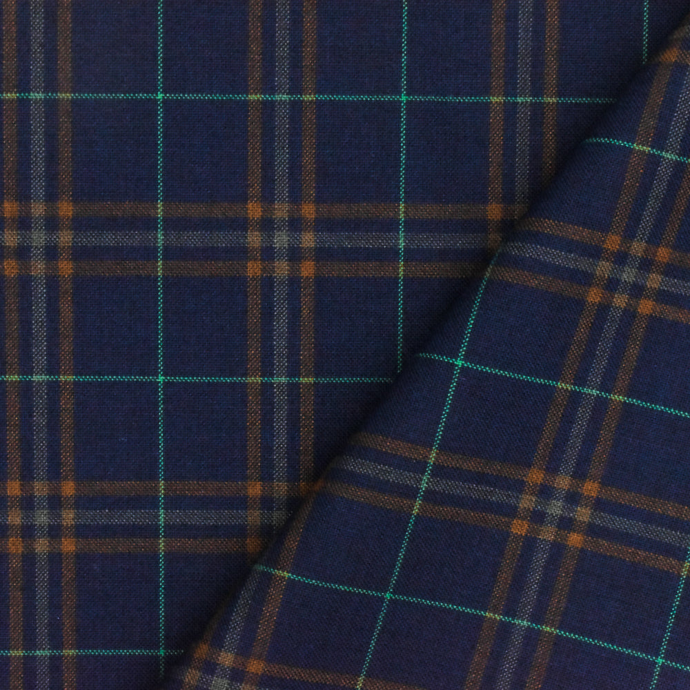New Navy-Brown-Multi Plaid Wool Polyester Woven Suiting Fabric