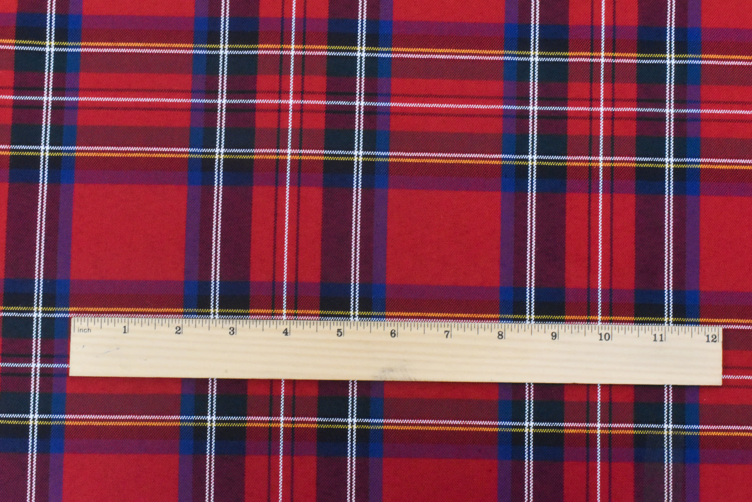 School Red-Blue-White-Multi Plaid Poly Madras Woven Fabric