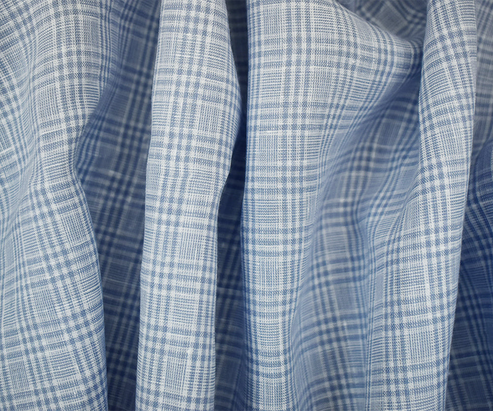 -142 gsm 100% Irish linen Spence Bryson Quintin yarn dyed plaid woven fabric with a ultrasanforised finish. Line if needed. Made in Ireland.