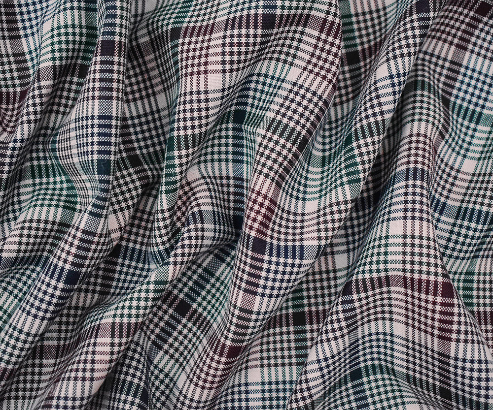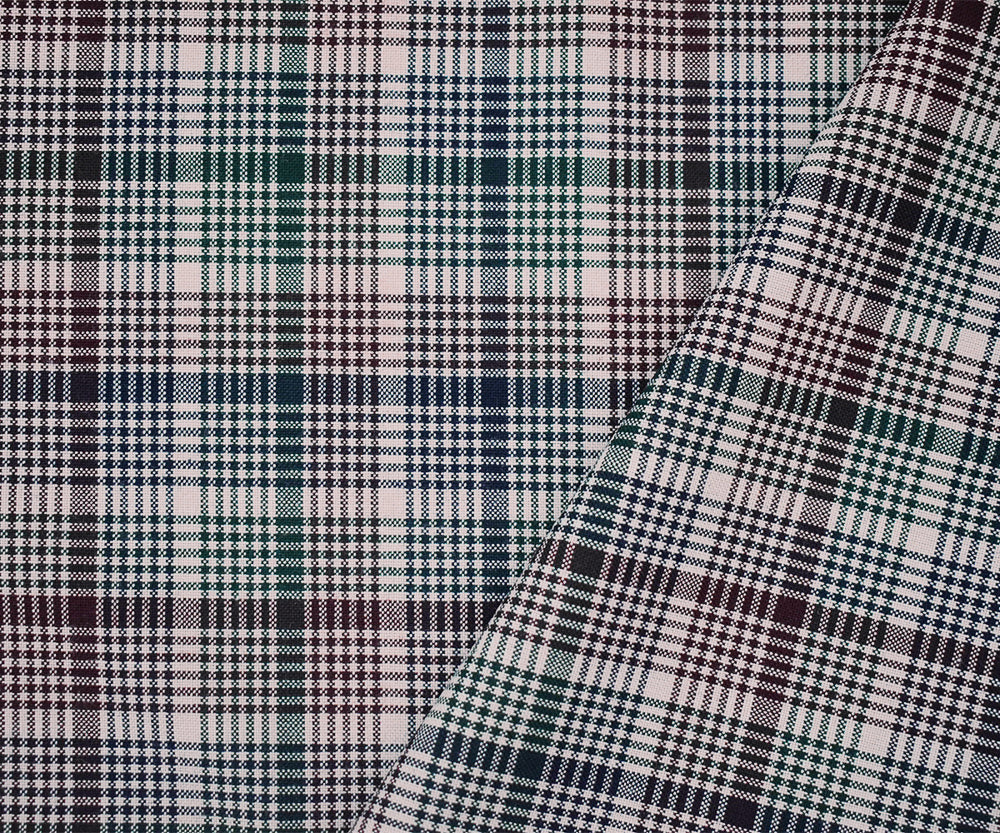 Wine Red-Multi Polyester-Wool Plaid Woven Shirting Fabric