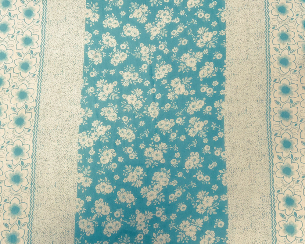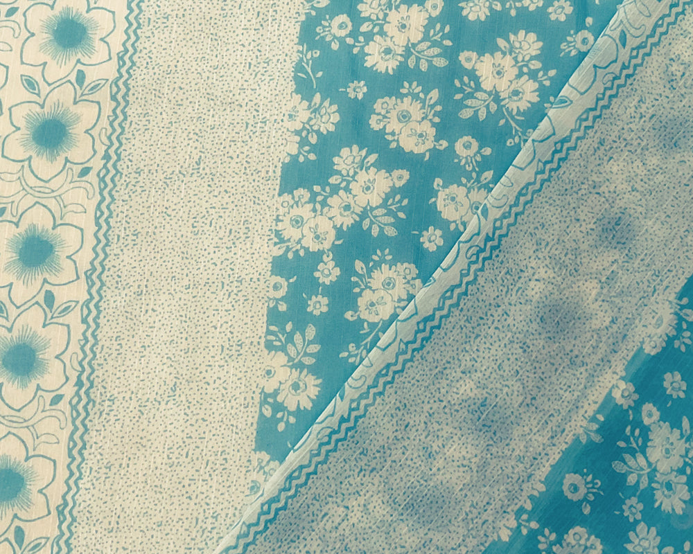 Aqua-White Poly Stripe Floral Printed Yoryu Chiffon Woven Fabric