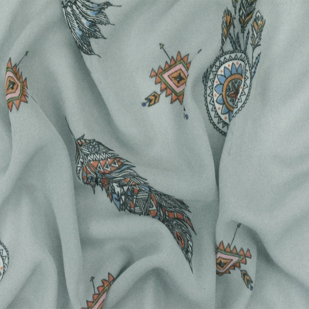 Ash Mist Blue-Multi Famous Designer Dream Catcher Printed Chiffon Fabric