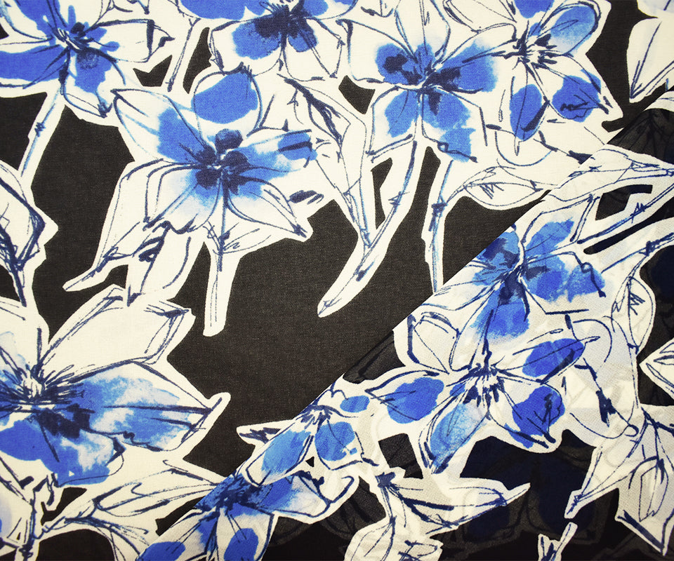 Black-Blue-Multi Poly Floral Printed Chiffon Woven Fabric