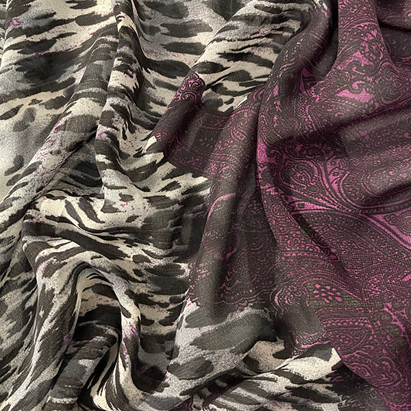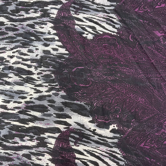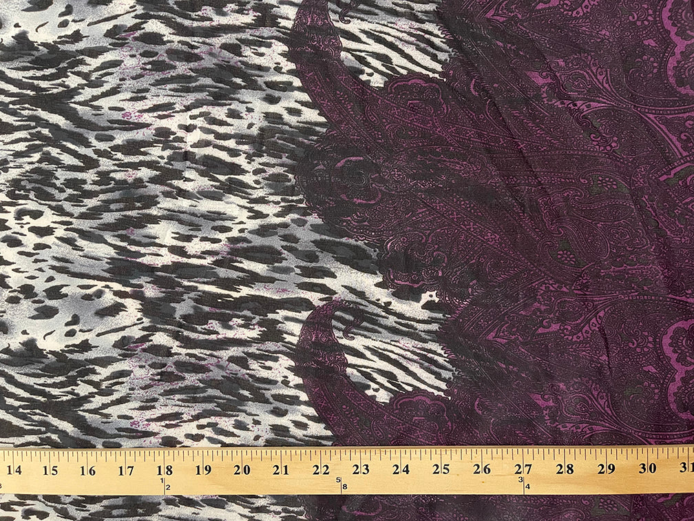 Burgundy Paisley Border Print Chiffon Fabric