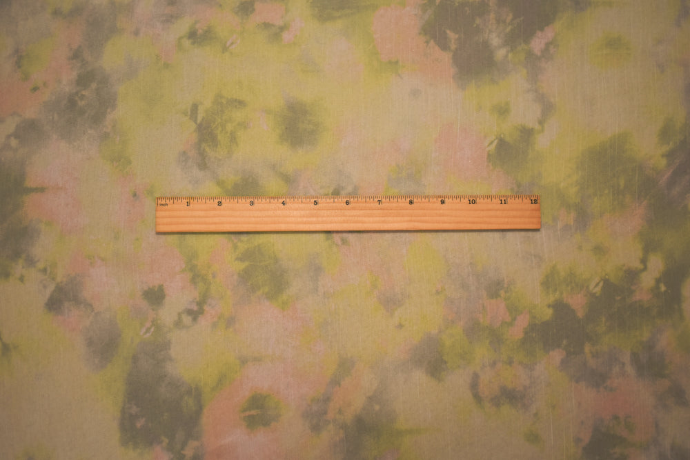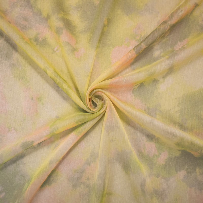 Green-Beige Poly Tie Dye Printed Crinkle Yoryu Chiffon Woven Fabric