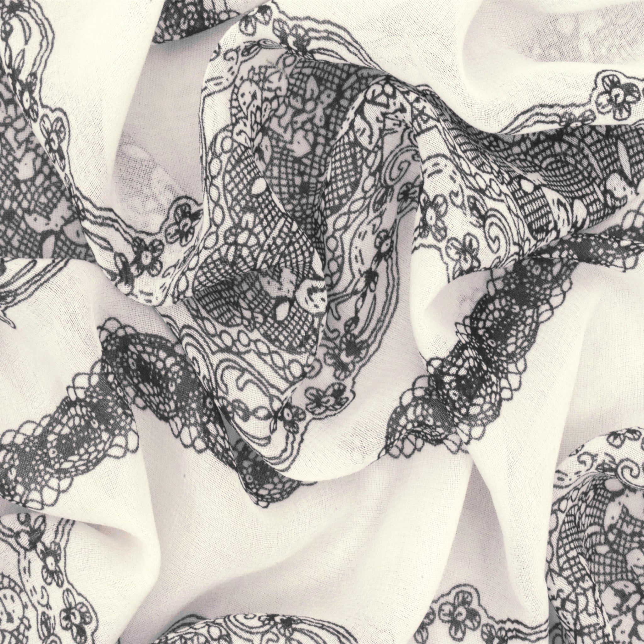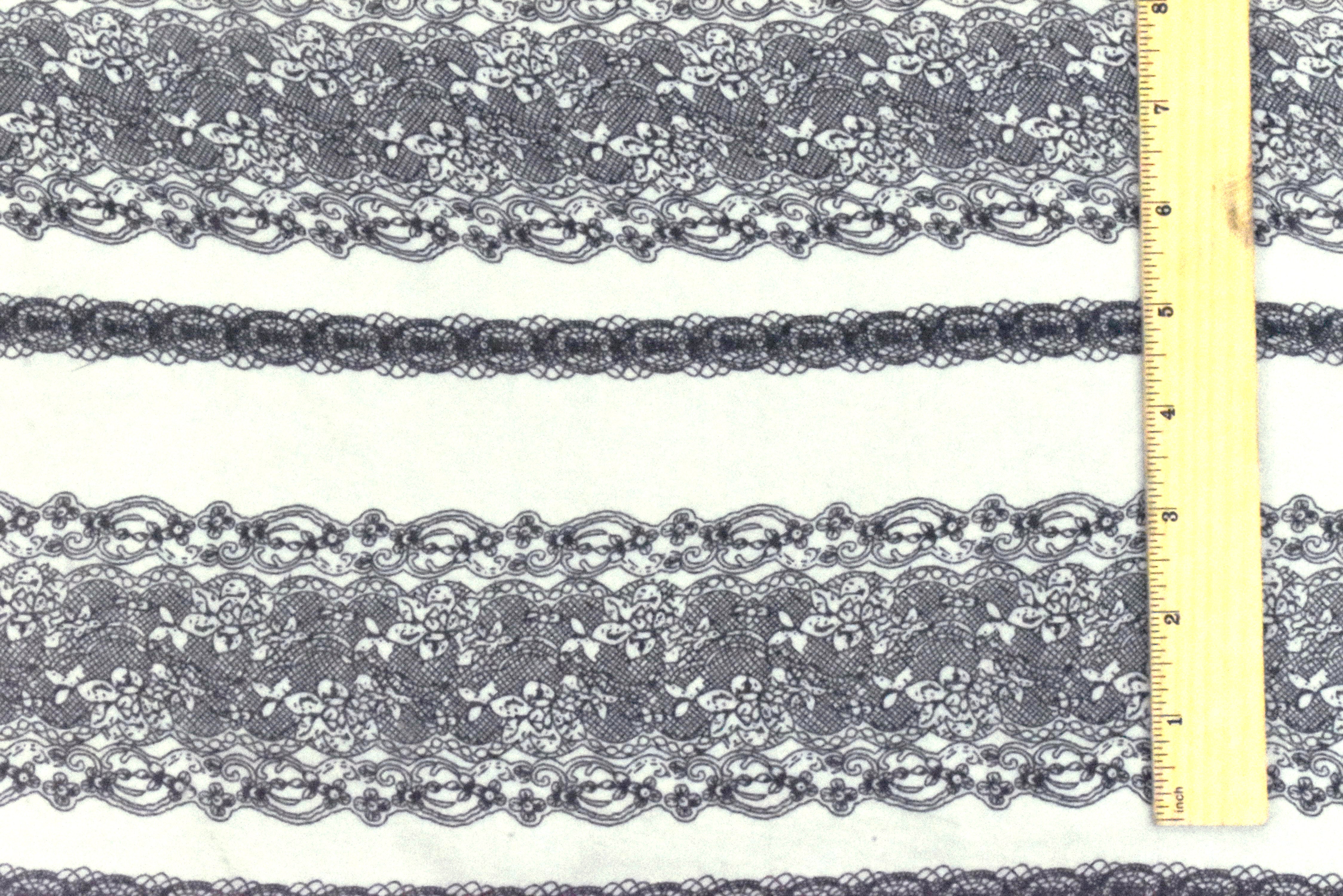 Ivory-Black Lace Stripe Printed Poly Chiffon Woven Fabric