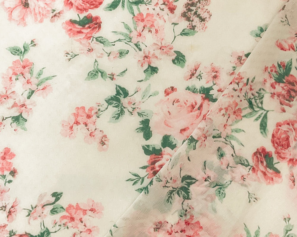 -Ivory-Pink-Multi Poly Floral Printed Dobby Chiffon Woven Fabric