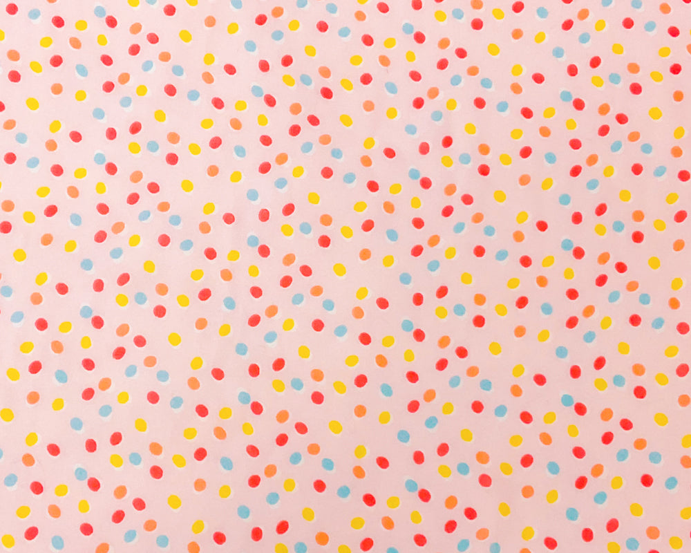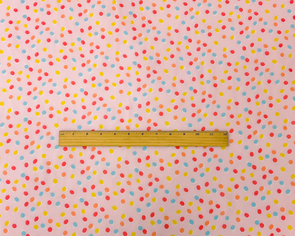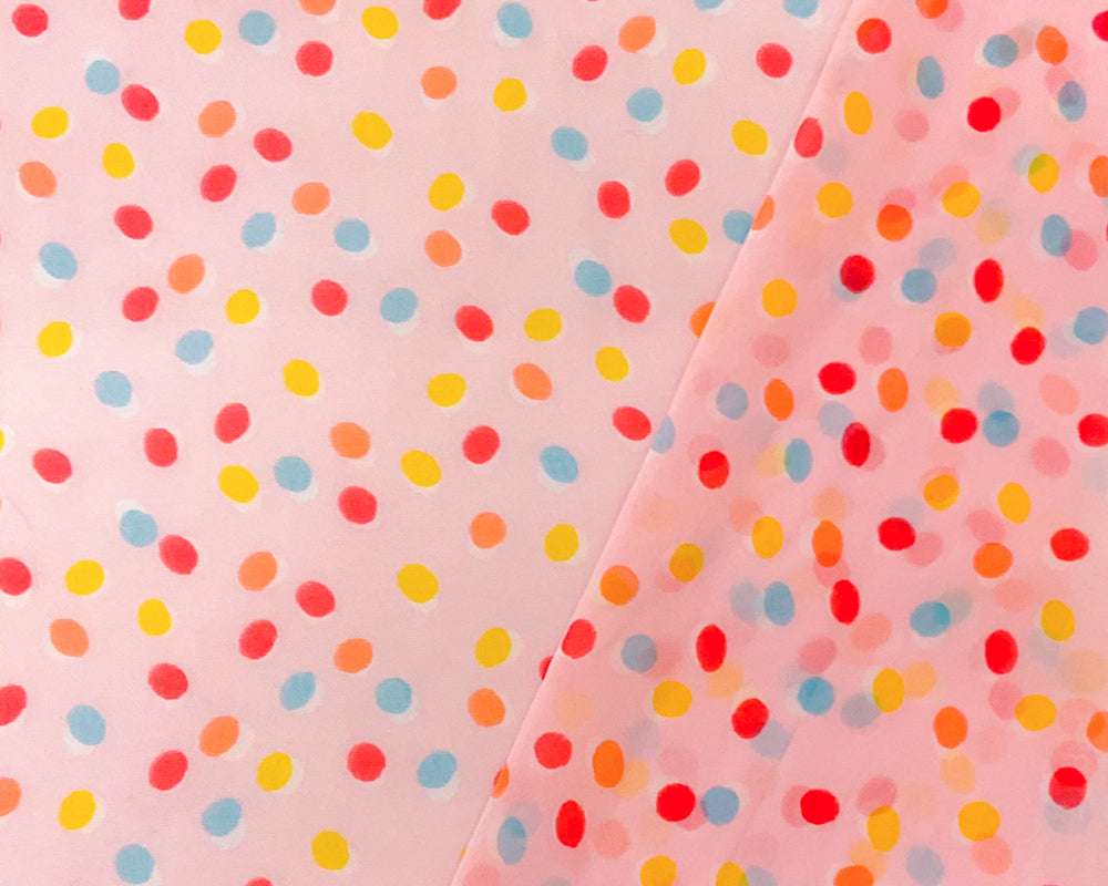 -Pink-Blue Multi Poly Dot Printed Chiffon Woven Fabric