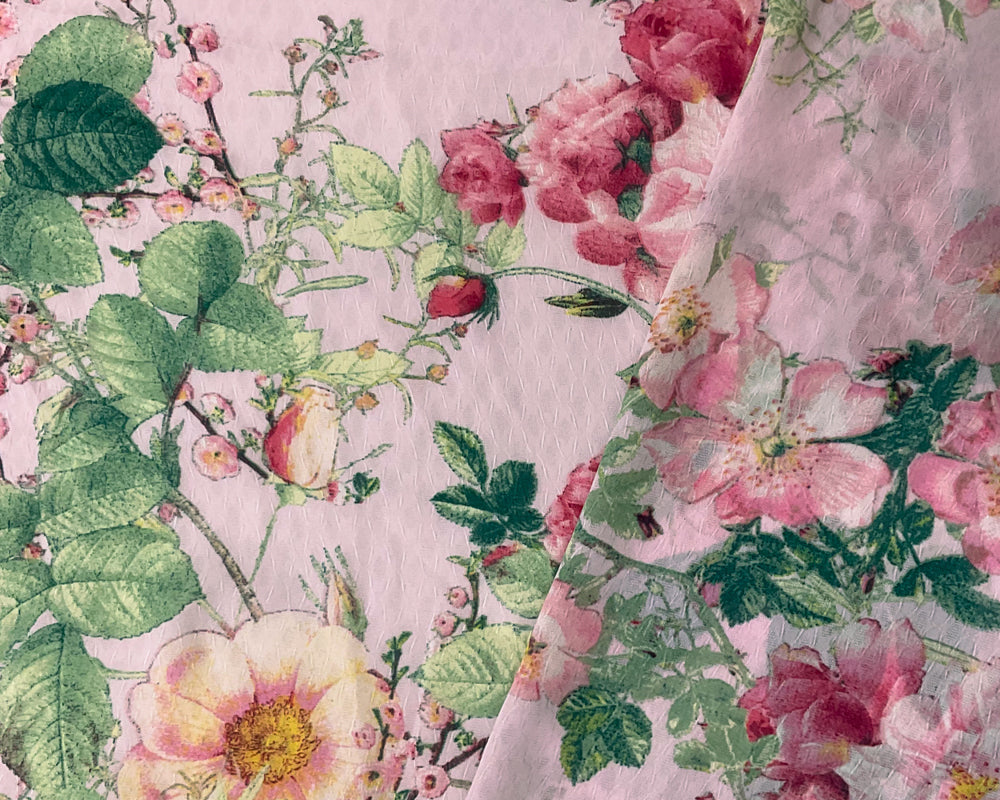 Pink-Multi Poly Floral Print Ogee Shape Dobby Chiffon Woven Fabric