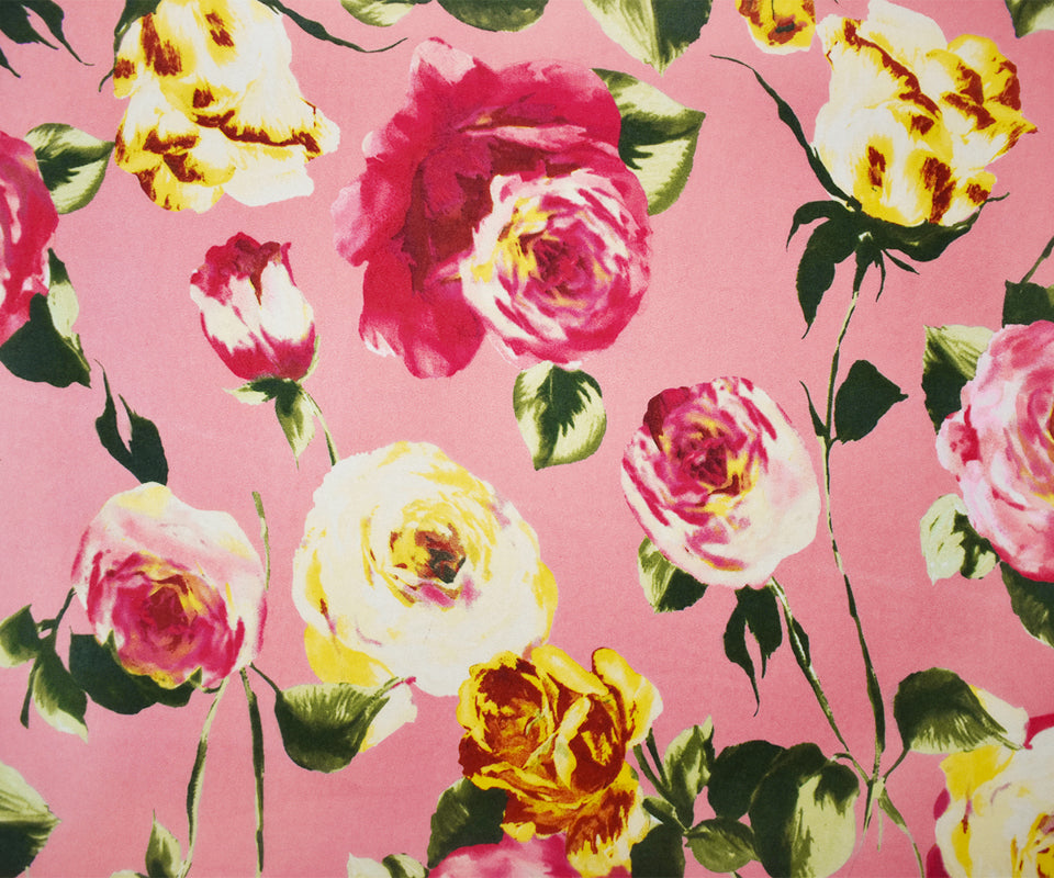 Pink-Yellow-Multi Poly Floral Printed Chiffon Woven Fabric