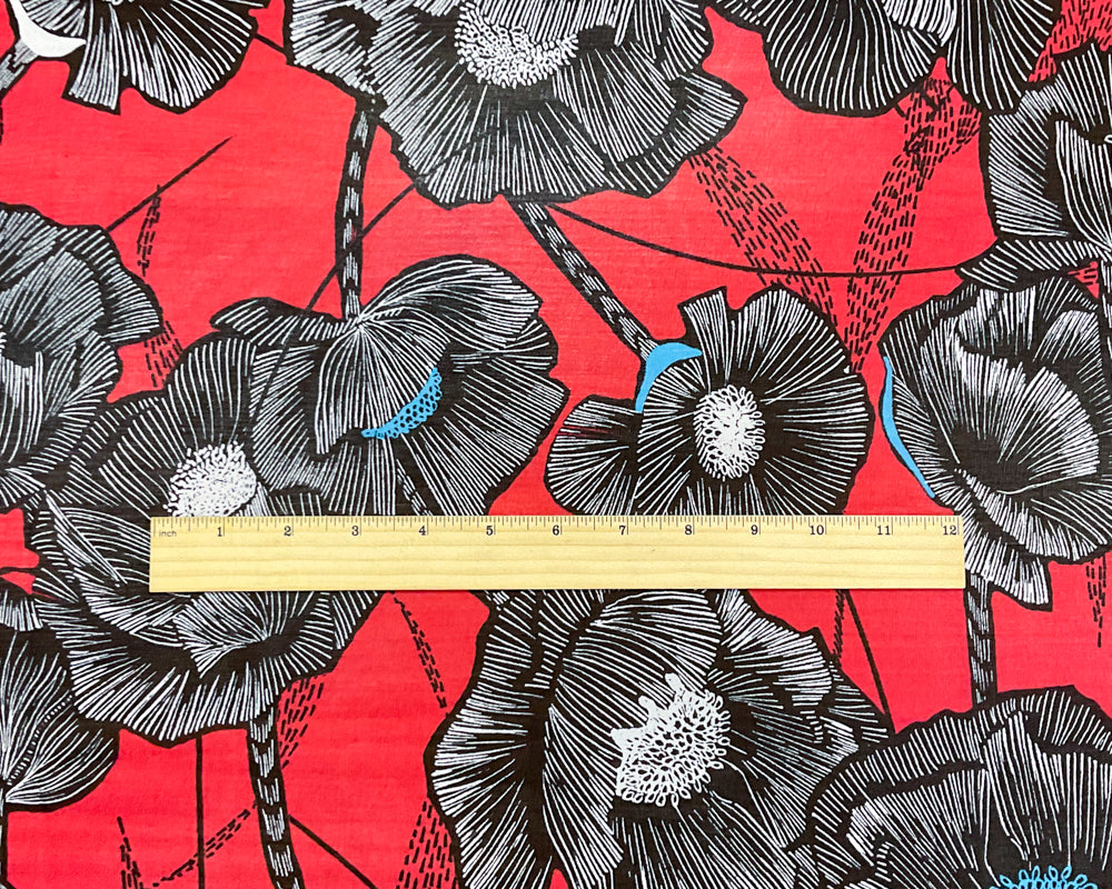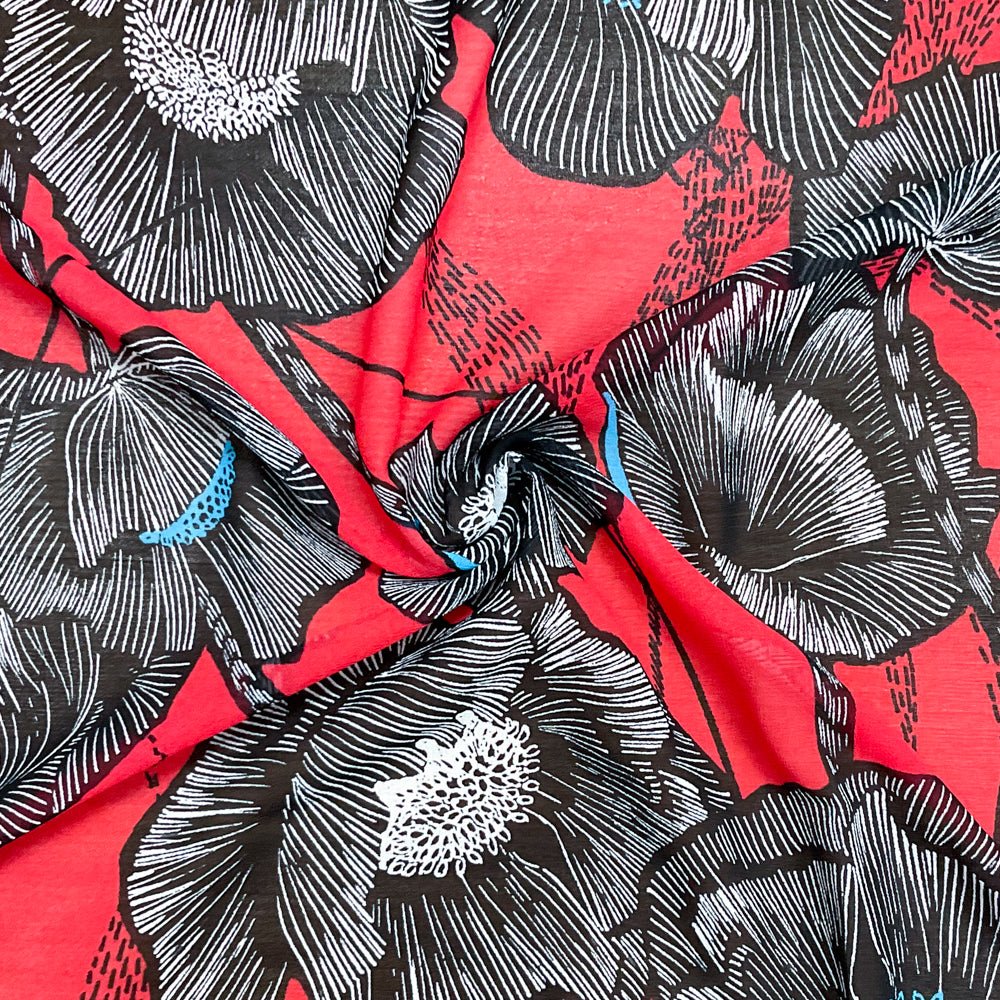 -Red-Black-Multi Poly Floral Printed Chiffon Woven Fabric