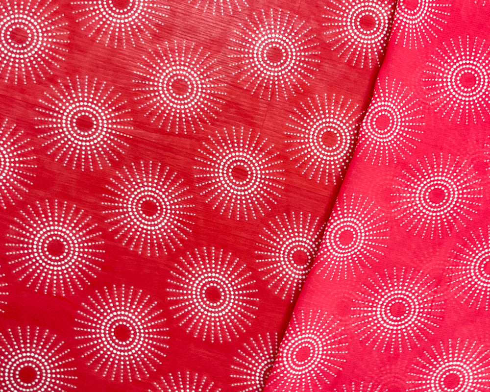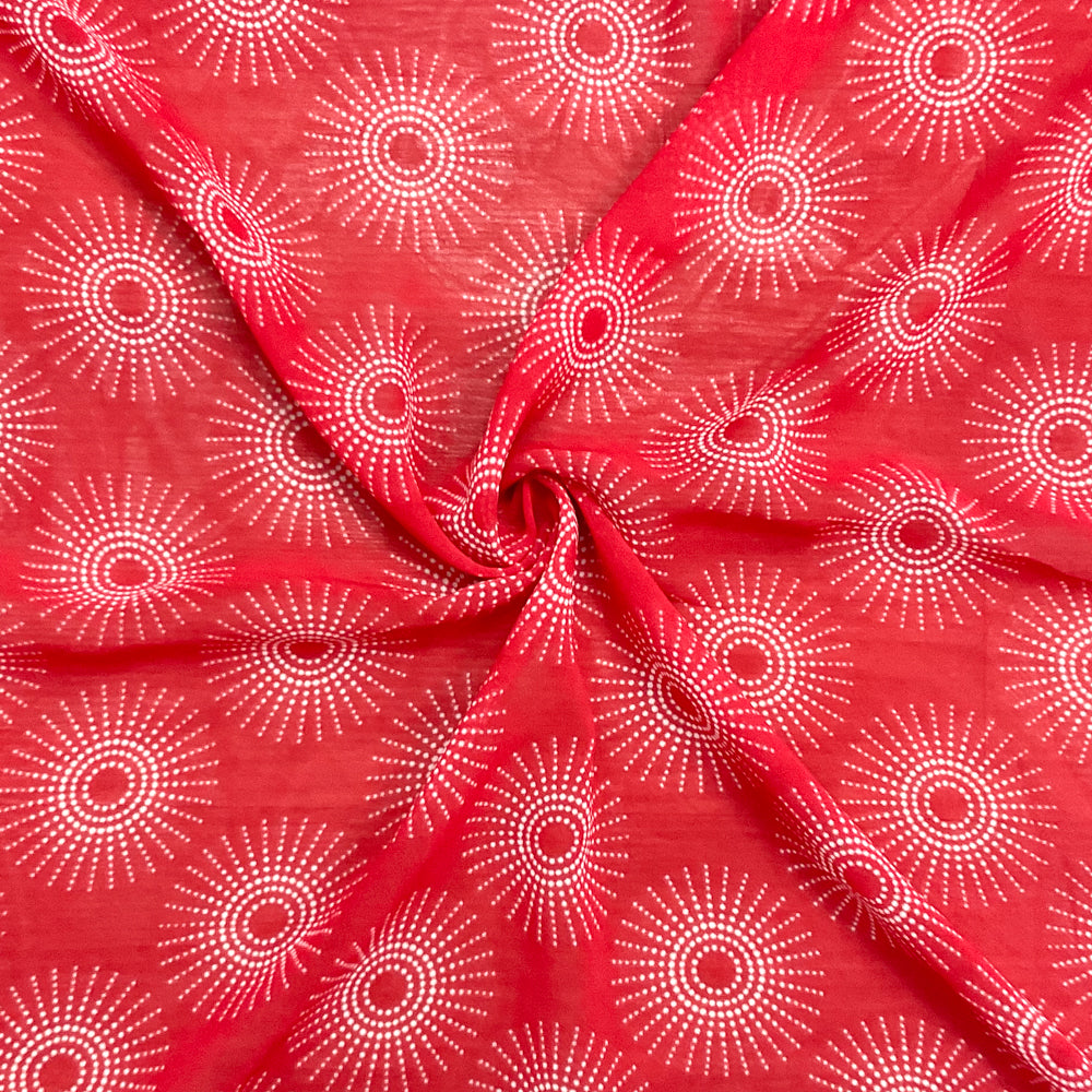Red-White Poly Abstract Printed Chiffon Woven Fabric